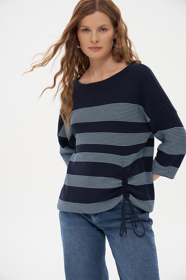 Пуловер Pezzo синий с голубыми полосками и кулиской