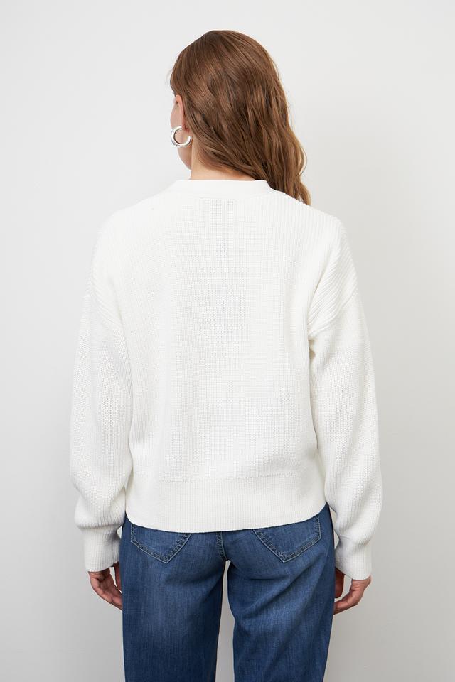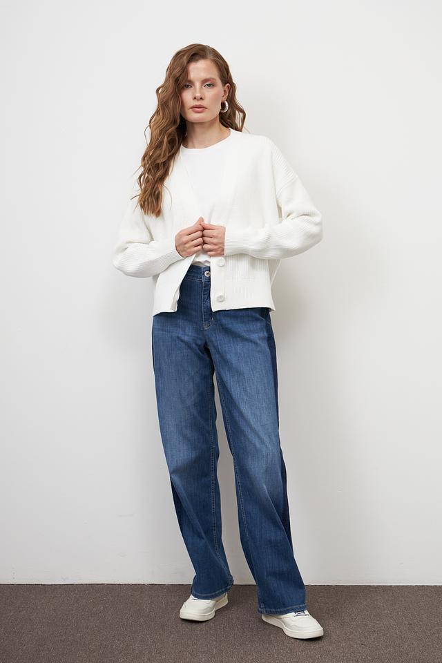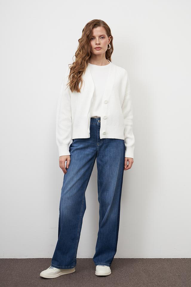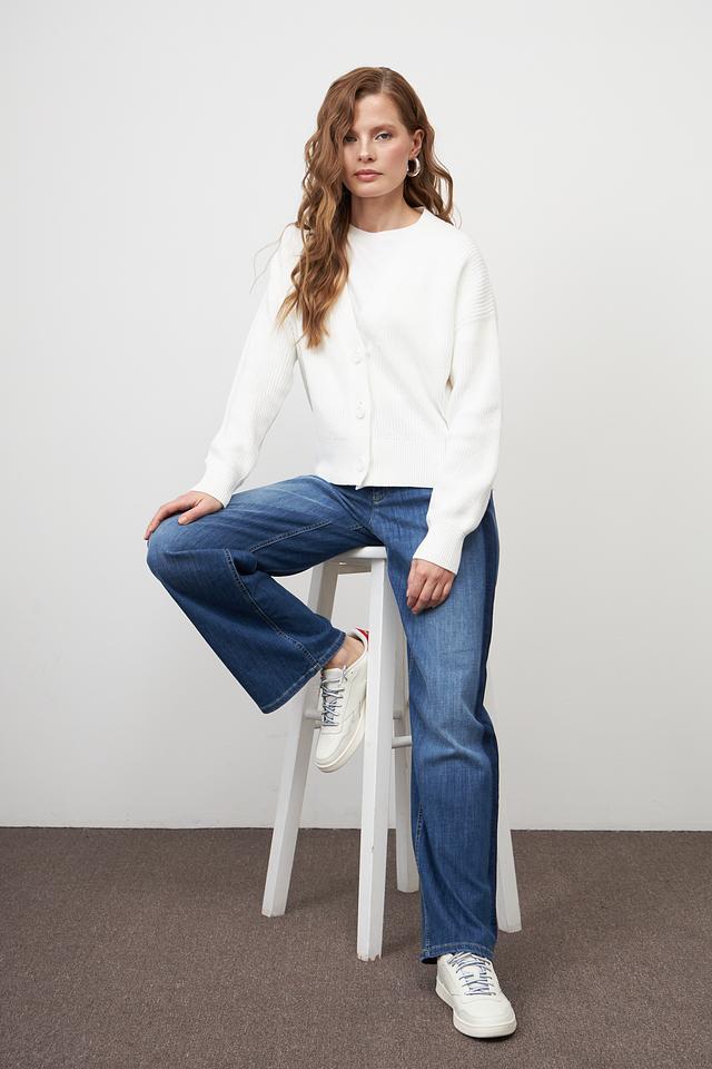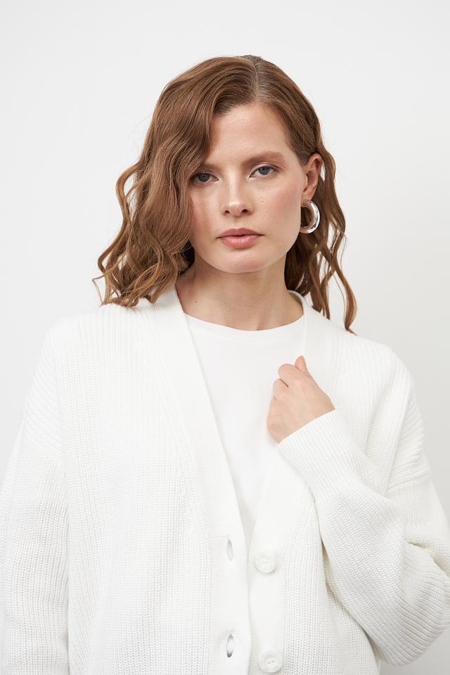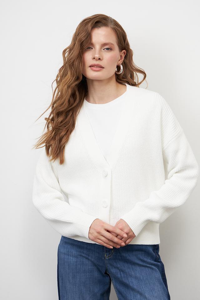 Жакет имеет классический белый цвет, который легко сочетается с различными элементами одежды. Модель застегивается на пуговицы, что позволяет регулировать степень открытости. Свободный крой обеспечивает свободу движений и позволяет создавать различные образы.