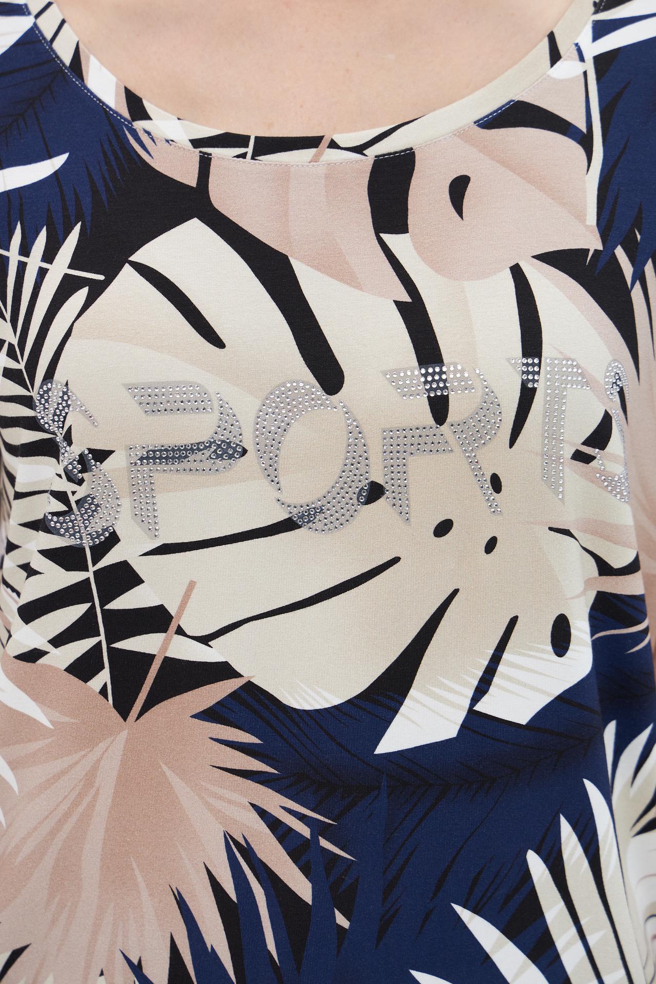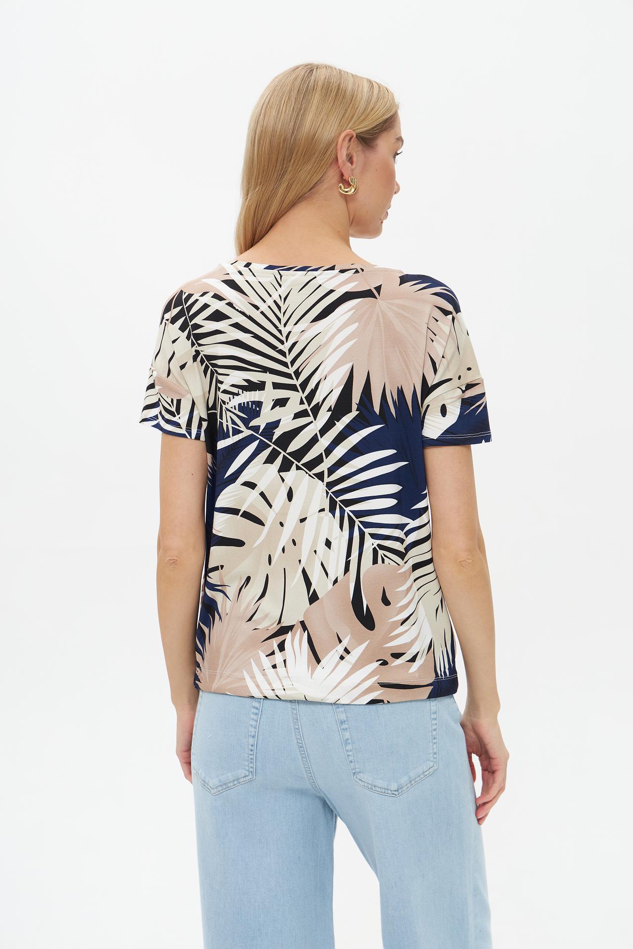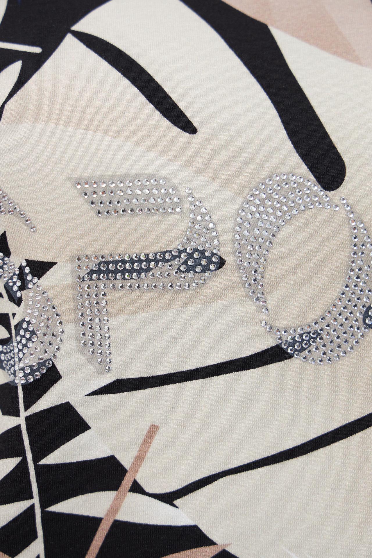 Очаровательная футболка с тропическим принтом от Pezzo. Сочетание вискозы и эластана обеспечивает невероятный комфорт и легкость в носке. Оригинальный дизайн с акцентным декором делает эту футболку идеальным выбором для создания стильного и запоминающегося образа.