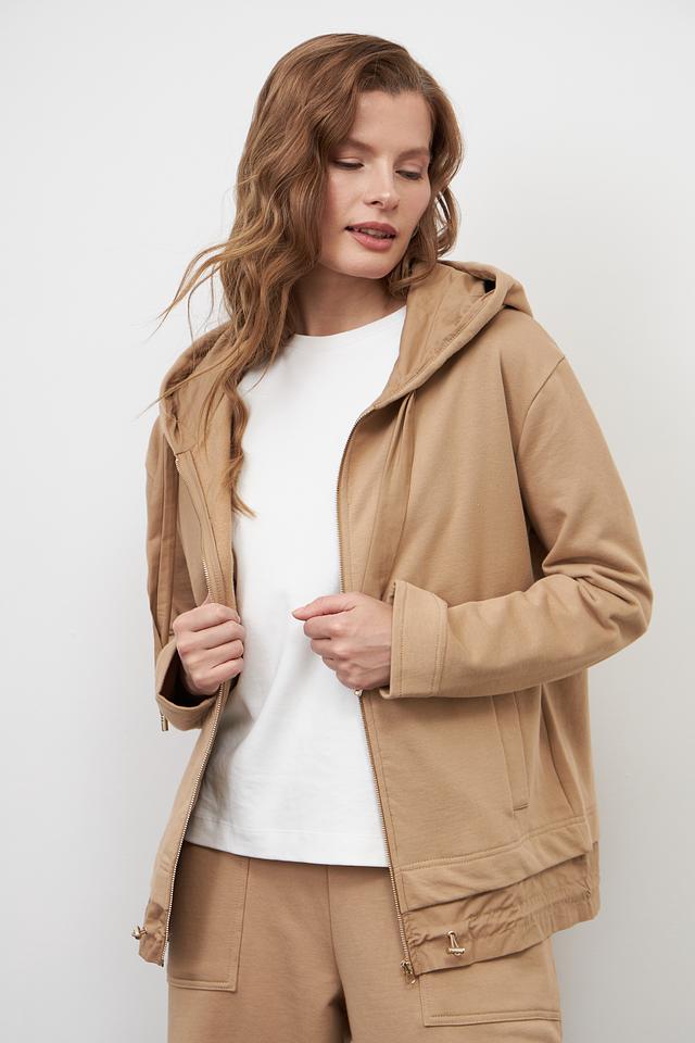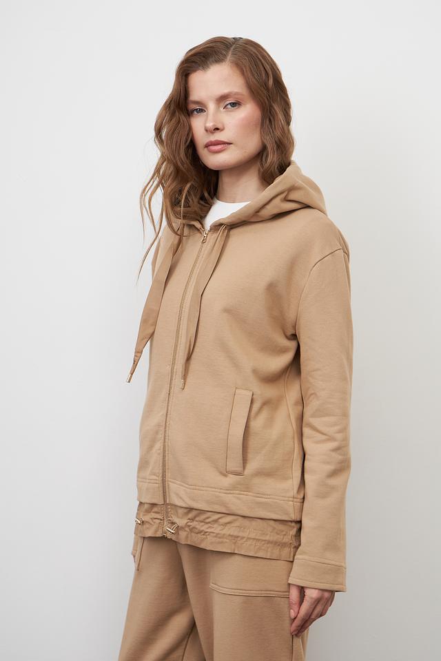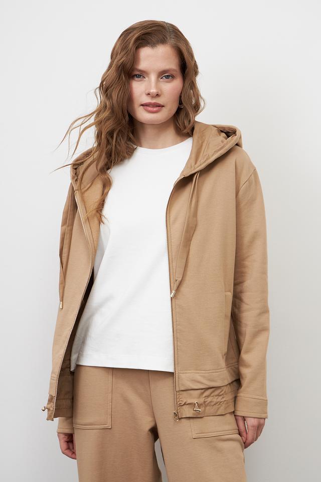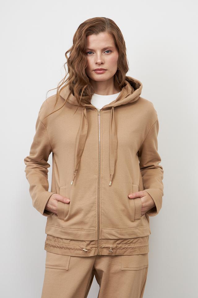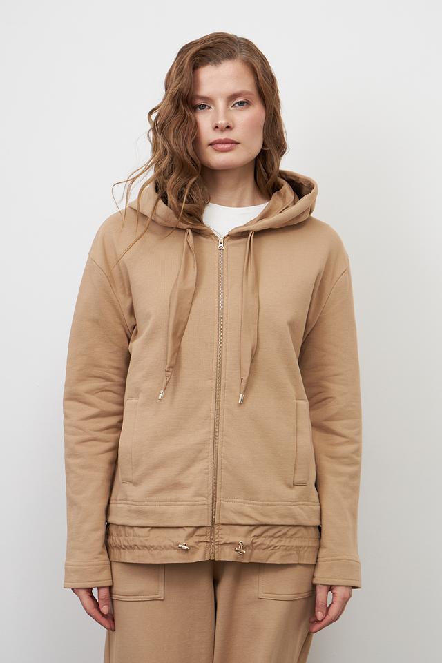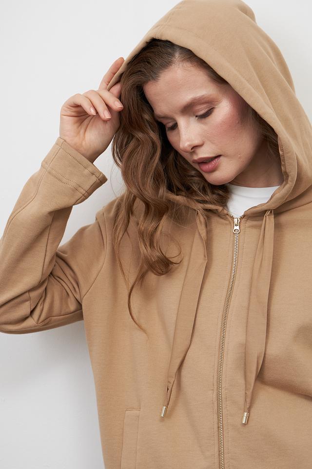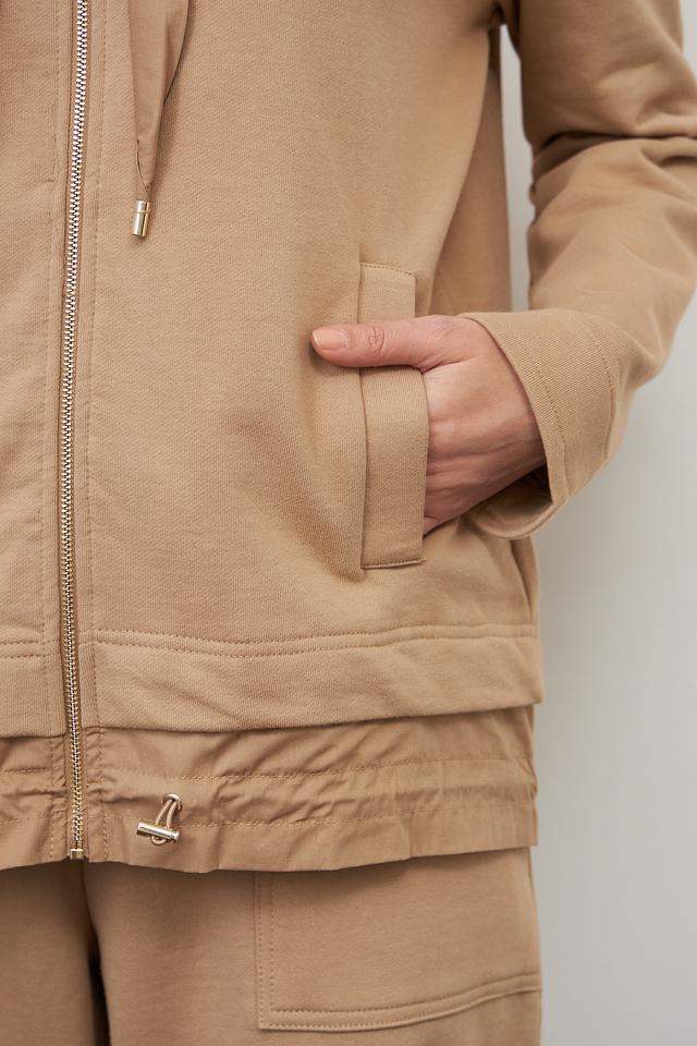 Бежевый пуловер Pezzo с капюшоном и молнией – удобная и стильная модель на каждый день. Изготовлен из мягкого хлопка, обеспечивающего комфорт в носке. Застежка-молния позволяет регулировать степень тепла. Состав: хлопок 100%