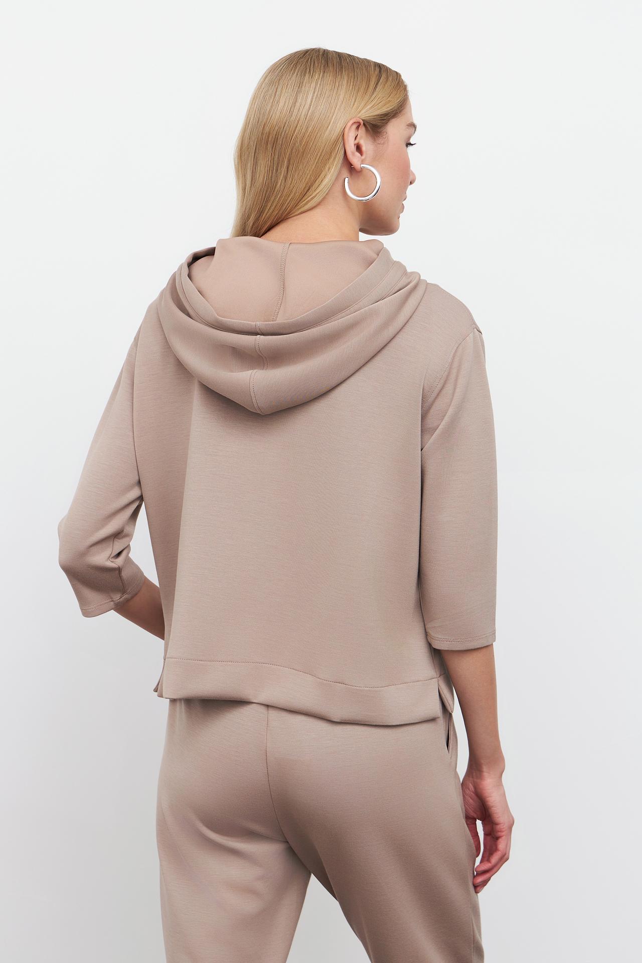 - Практичность. Удобный капюшон с завязками добавляет функциональности, делая женский пуловер идеальным выбором для активного отдыха или комфортных городских прогулок.