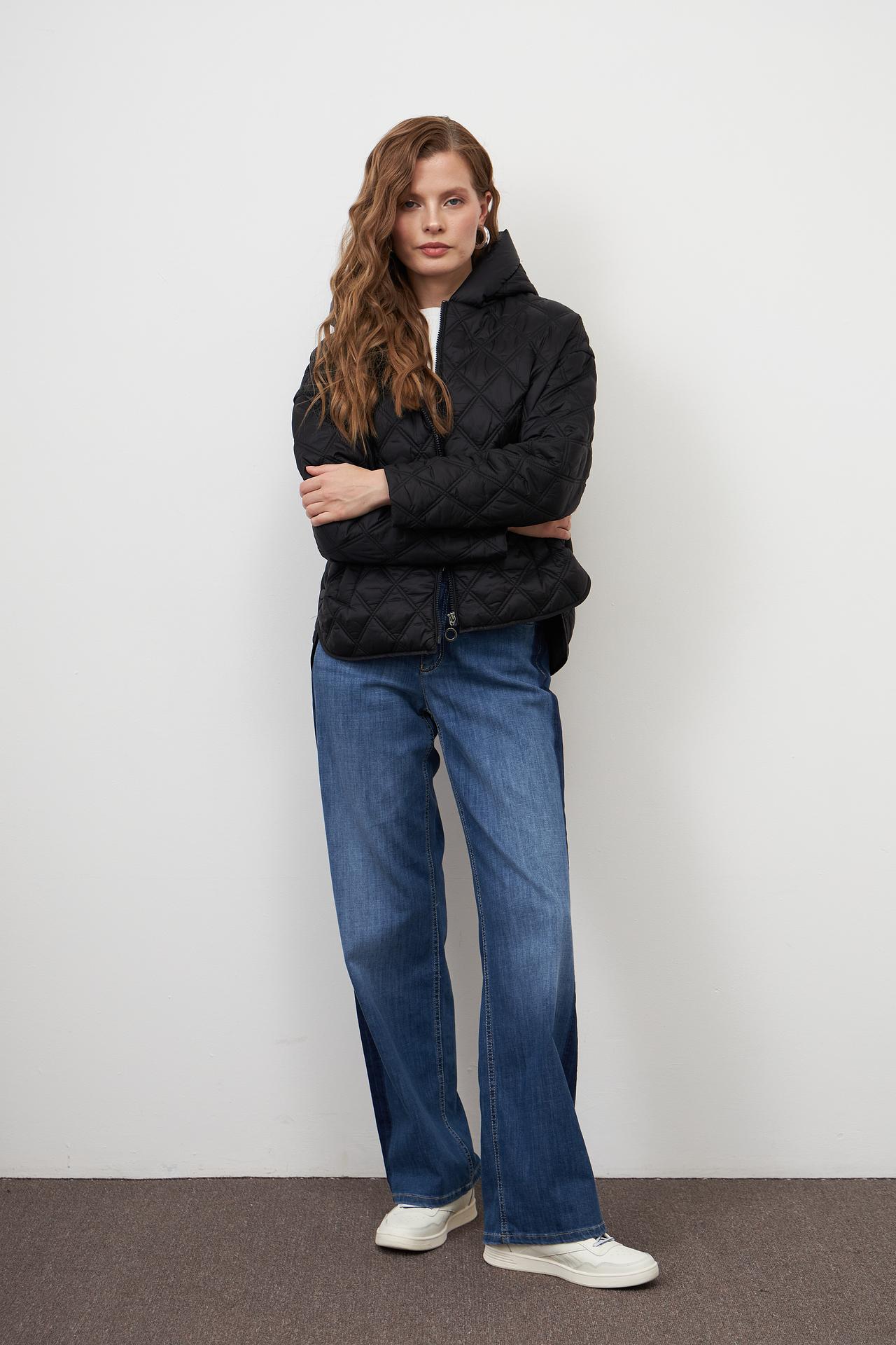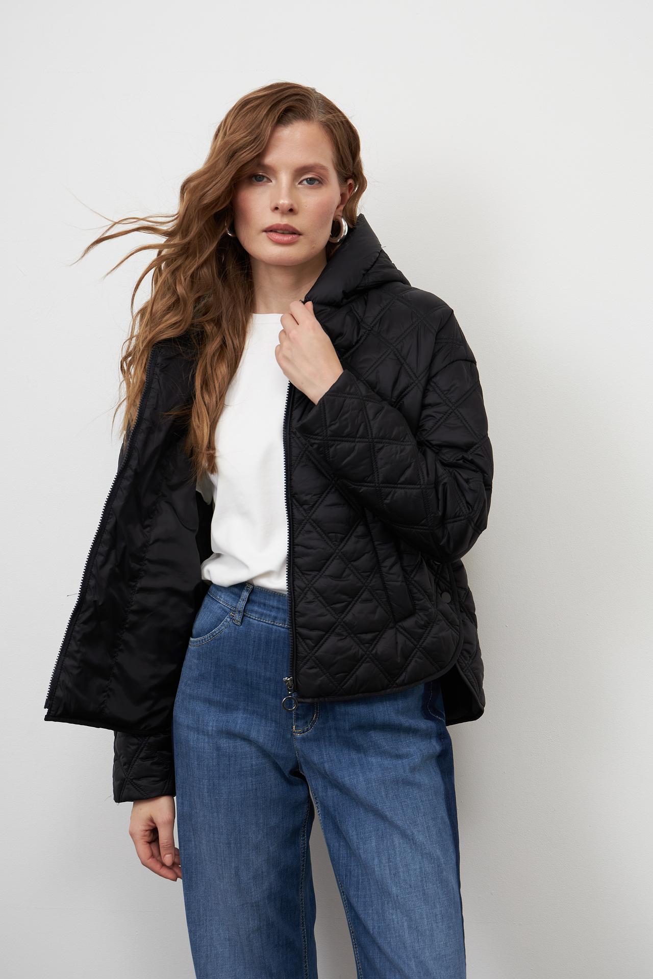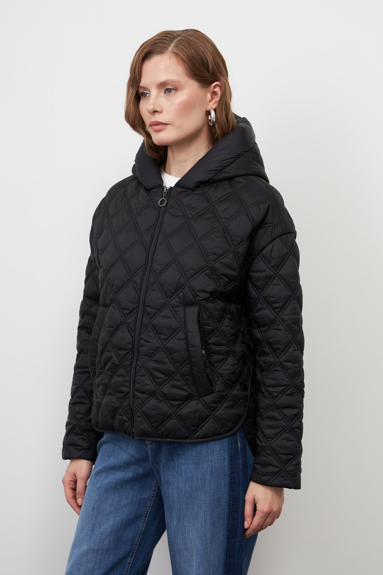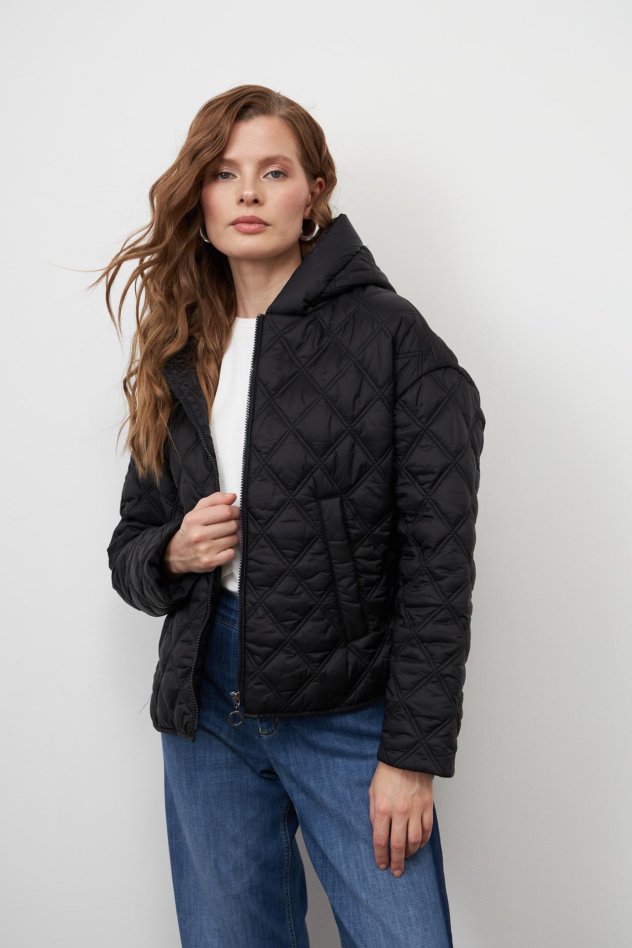 - Дизайн: Классическая стежка ромбами придает куртке элегантный вид, а удобный капюшон добавляет функциональности.