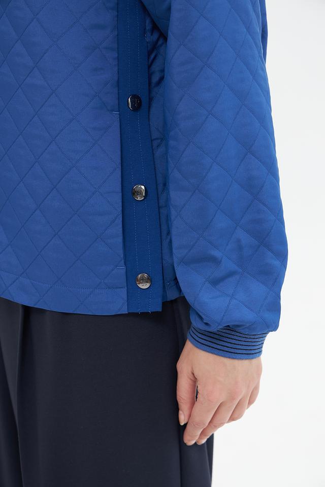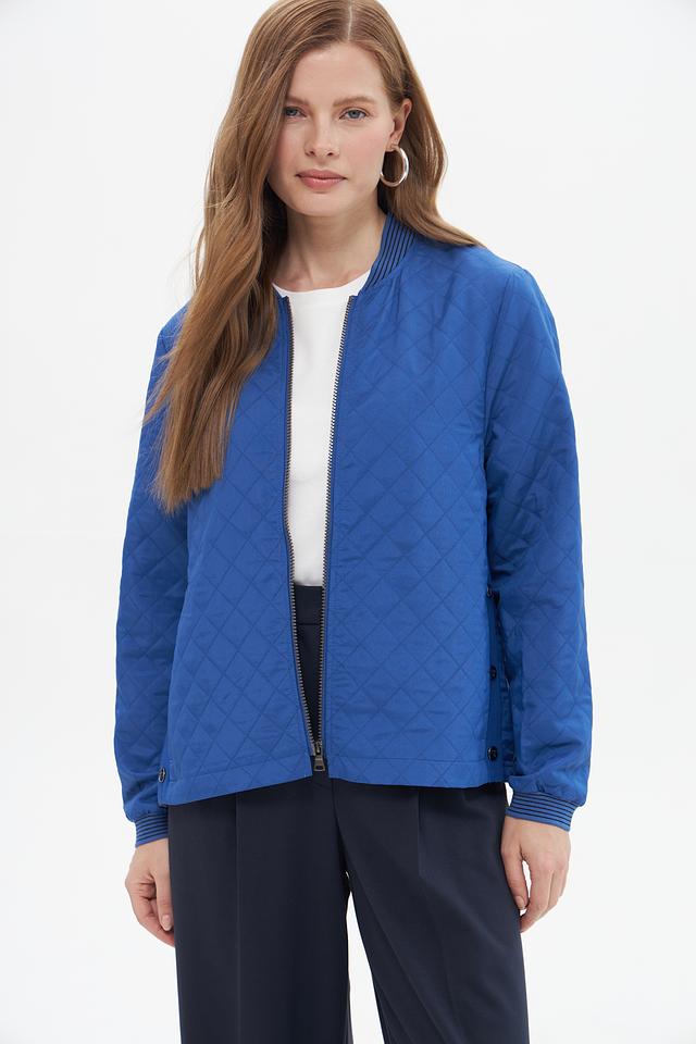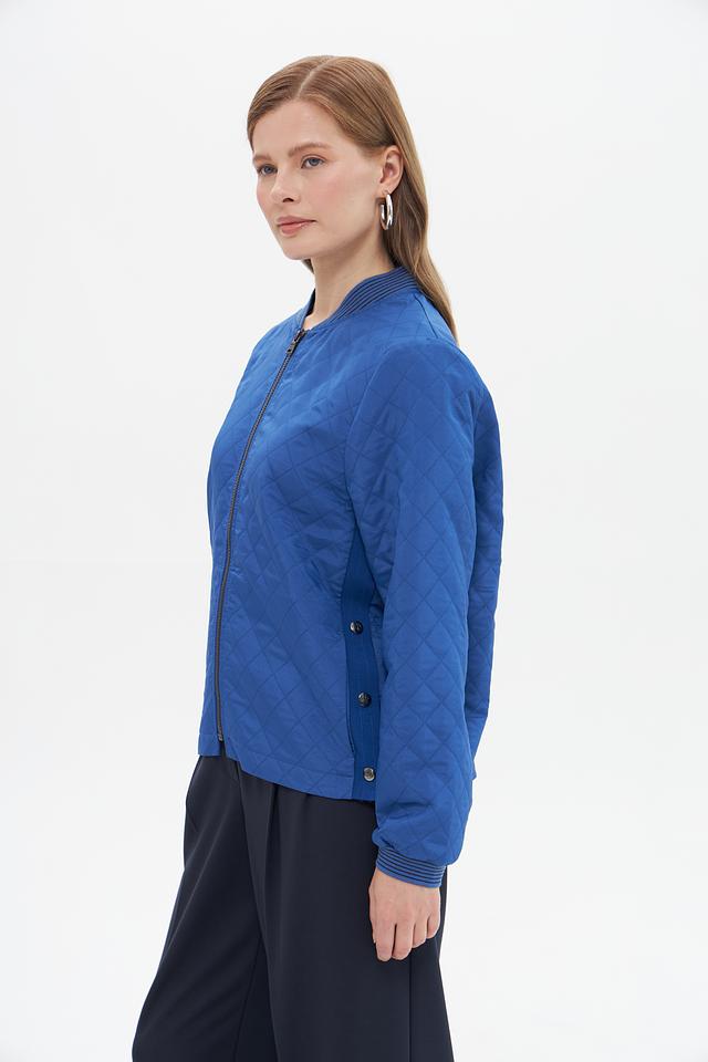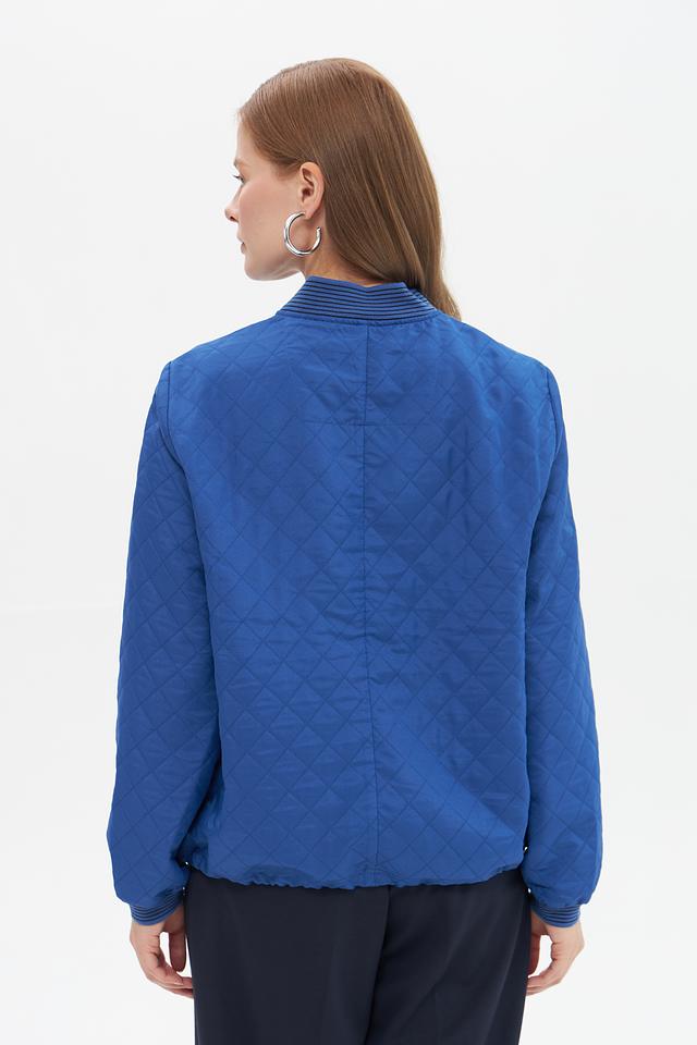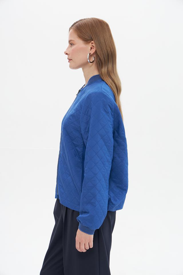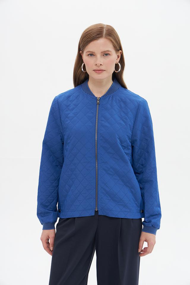 Куртка имеет стеганую текстуру, которая придает ей современный вид. Застежка – молния, воротник – стойка. Манжеты и нижний край куртки выполнены из трикотажной резинки, плотно прилегающей к телу.