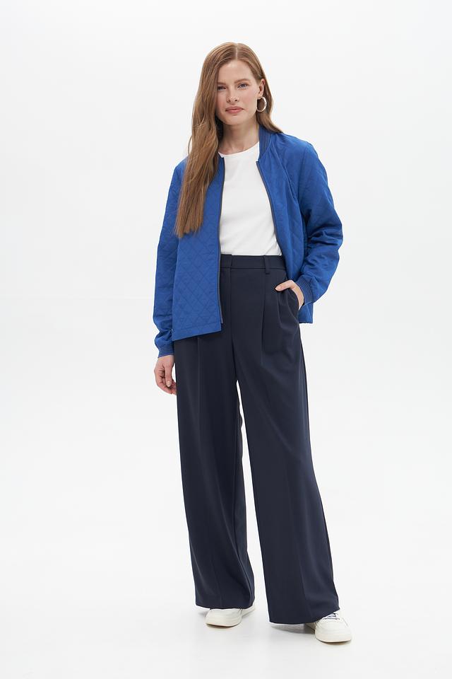 Синяя стеганая куртка Pezzo из полиэстера с эластаном. Модель на молнии с воротником-стойкой и трикотажной резинкой на манжетах и по низу изделия. Практичная и стильная куртка для прохладной погоды. Состав: полиэстер 99%, эластан 1%