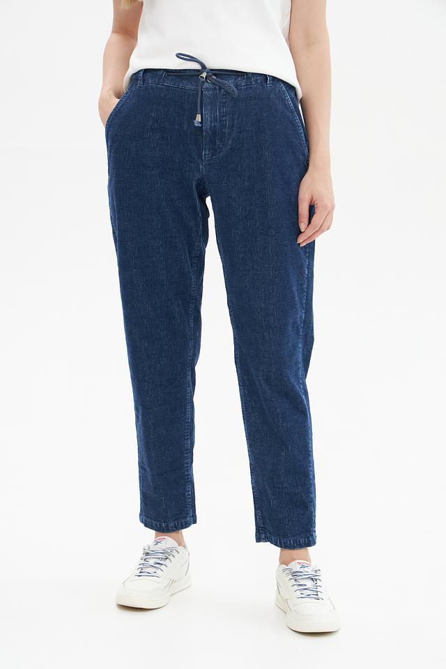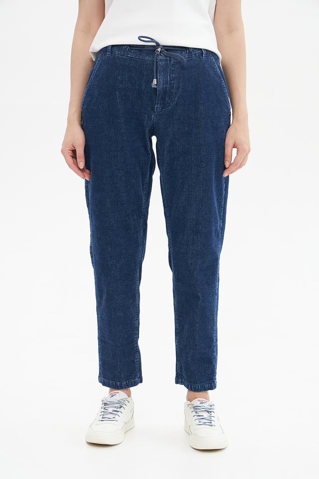 Женские брюки Pezzo синего цвета в технике варёного джинса – удобная и стильная модель на каждый день. Брюки с эластичным поясом и завязками обеспечивают комфортную посадку, а укороченный крой делает их актуальным элементом гардероба. Состав: хлопок 98%, эластан 2%