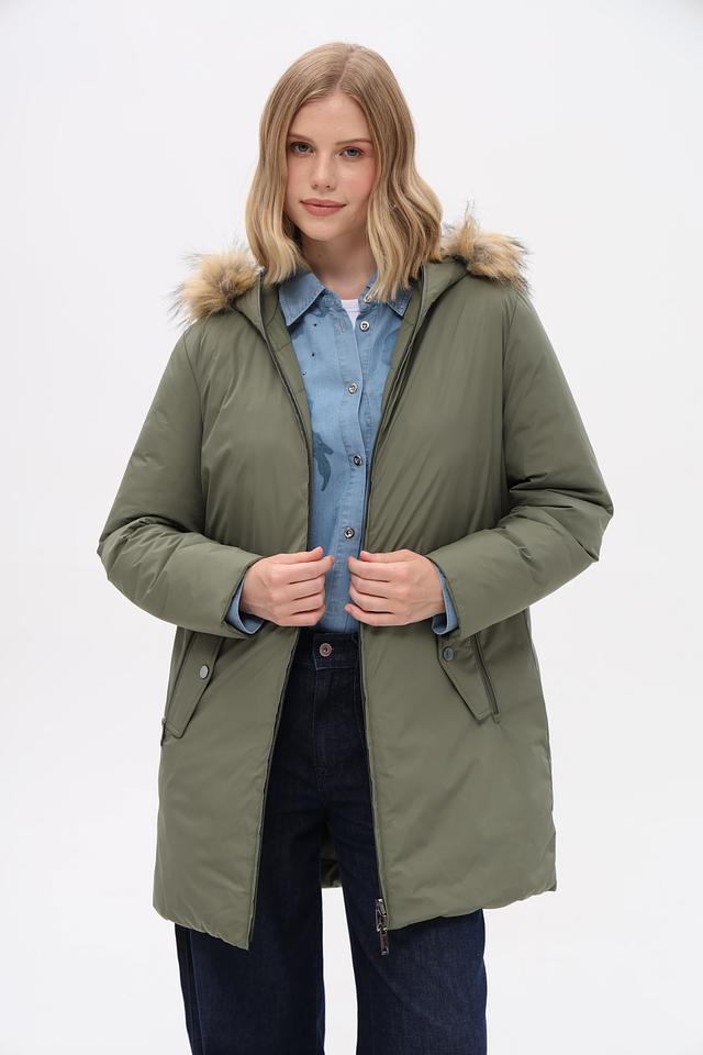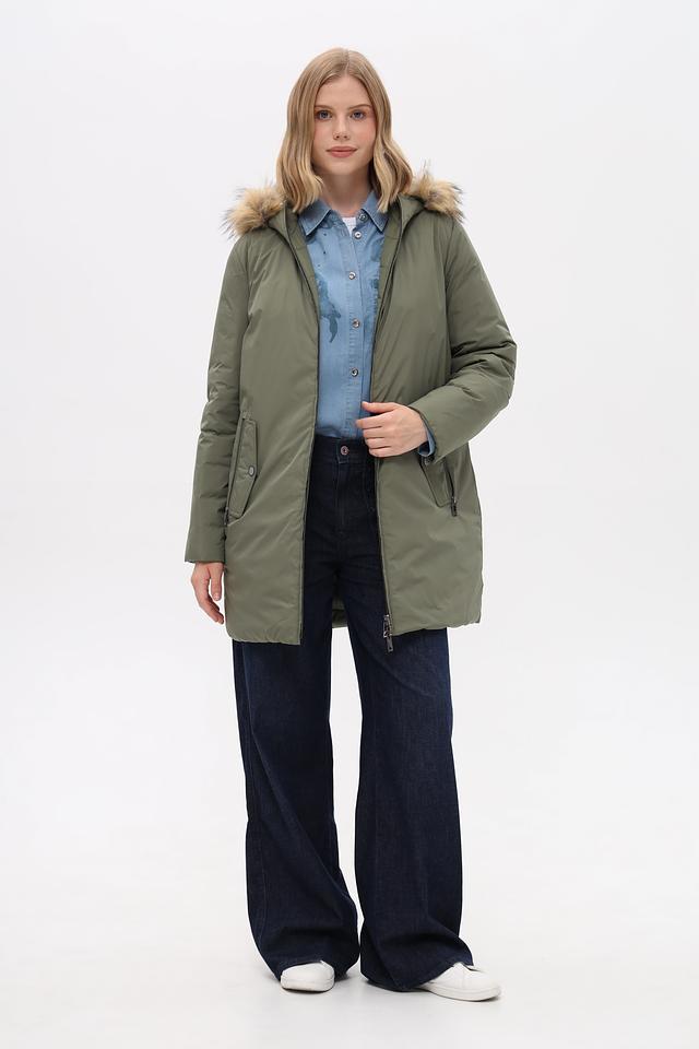 Куртка имеет прямой крой, который не сковывает движения и хорошо сочетается с различными стилями одежды. Капюшон дополнен отделкой из искусственного меха, защищающей от холода и ветра.