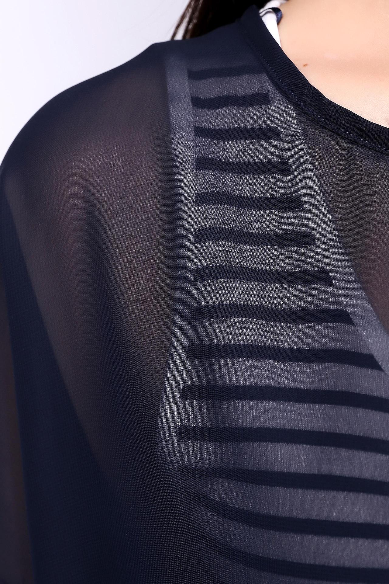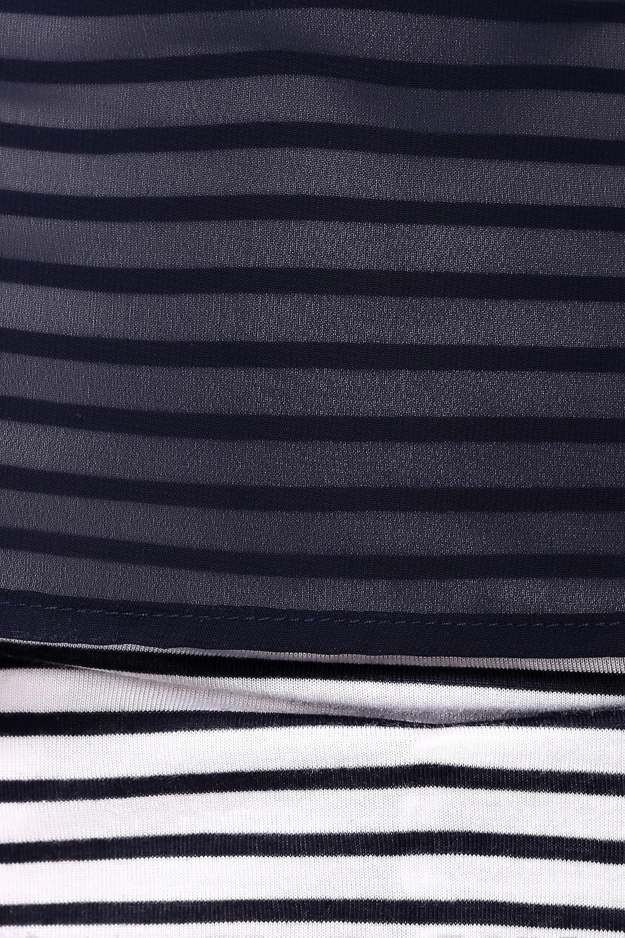 - Дизайн: Оригинальный принт в полоску придает образу динамичность и современный вид. Прозрачная ткань сверху создает интригующий эффект.