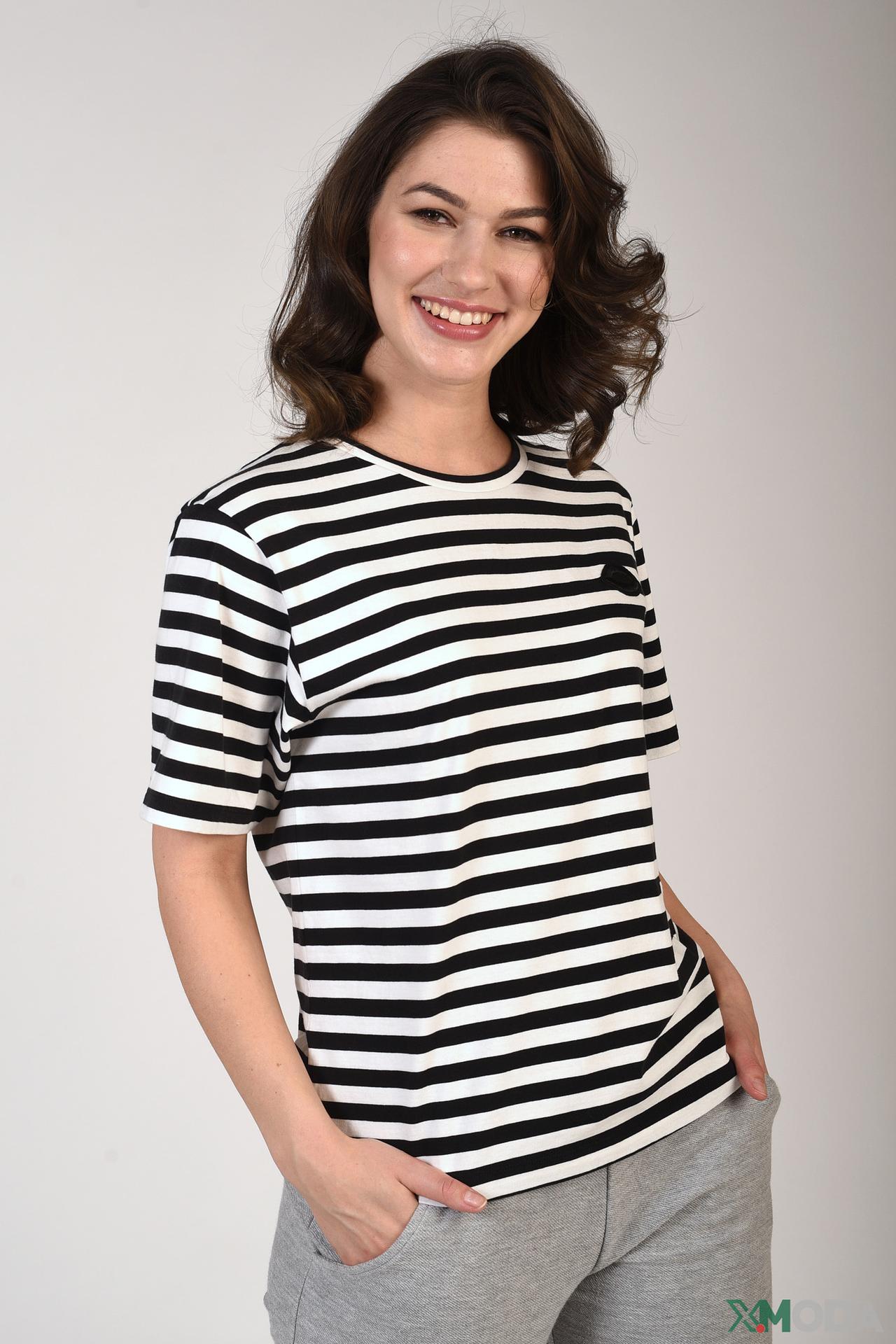 Эта футболка станет идеальной основой для множества образов, от повседневных до более элегантных. Сочетайте ее с джинсами, брюками или юбками, создавая актуальные и модные луки.