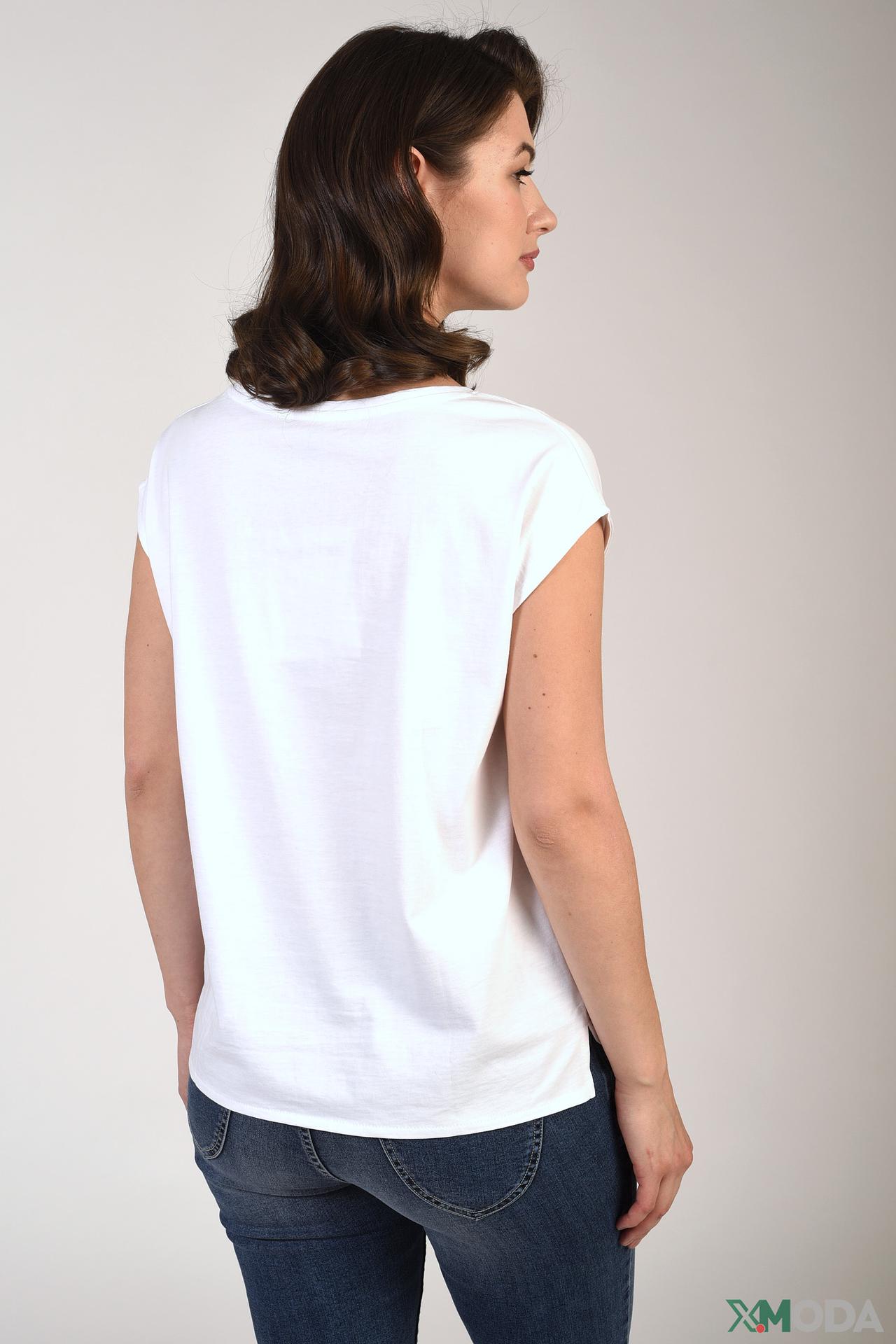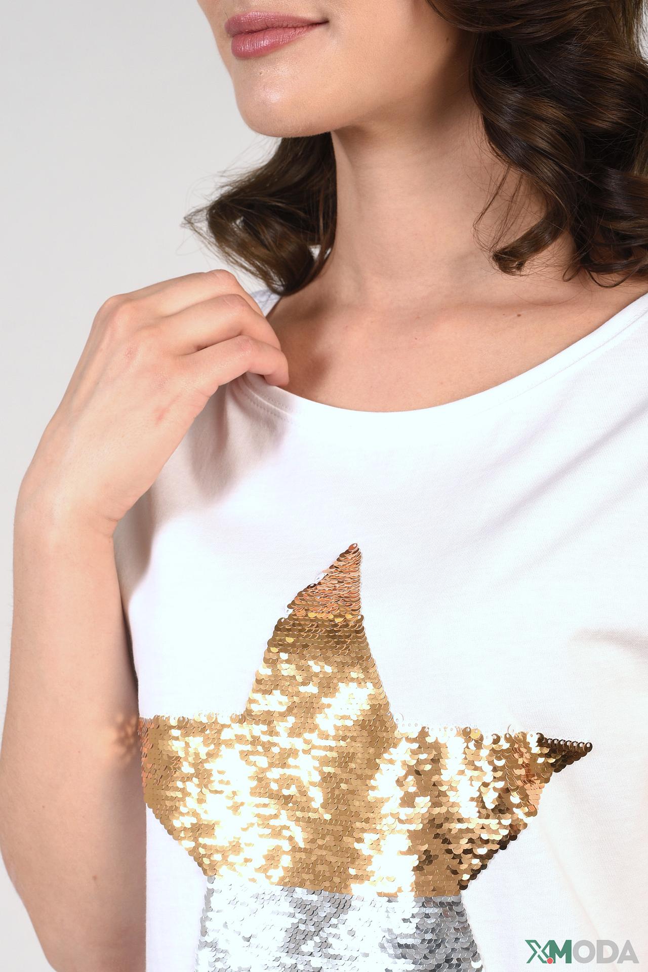 Стильная и комфортная белая футболка Pezzo из 100% хлопка – прекрасный выбор для вашего повседневного гардероба. Эта женская футболка отличается высоким качеством материала и оригинальным дизайном. Модная футболка с коротким рукавом и с декоративной деталью в виде звезды из пайеток добавит яркий акцент в ваш образ.