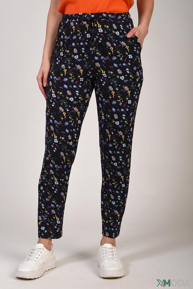 Женские брюки Pezzo чёрного цвета с ярким цветочным принтом станут стильным дополнением к вашему гардеробу. Модель выполнена из мягкой вискозы с добавлением эластана, обеспечивающего комфорт при носке. Состав: вискоза 95%, эластан 5%