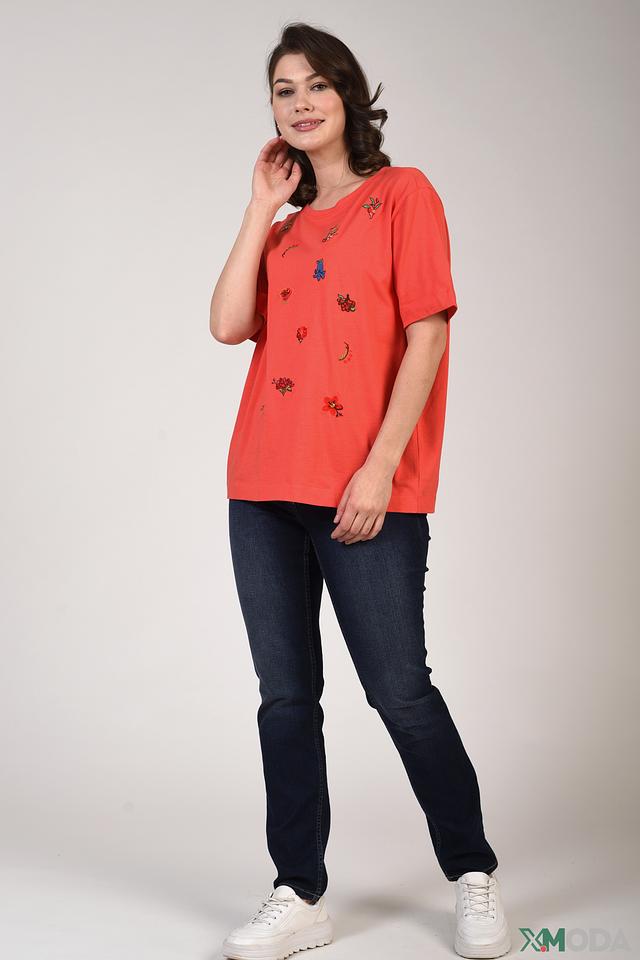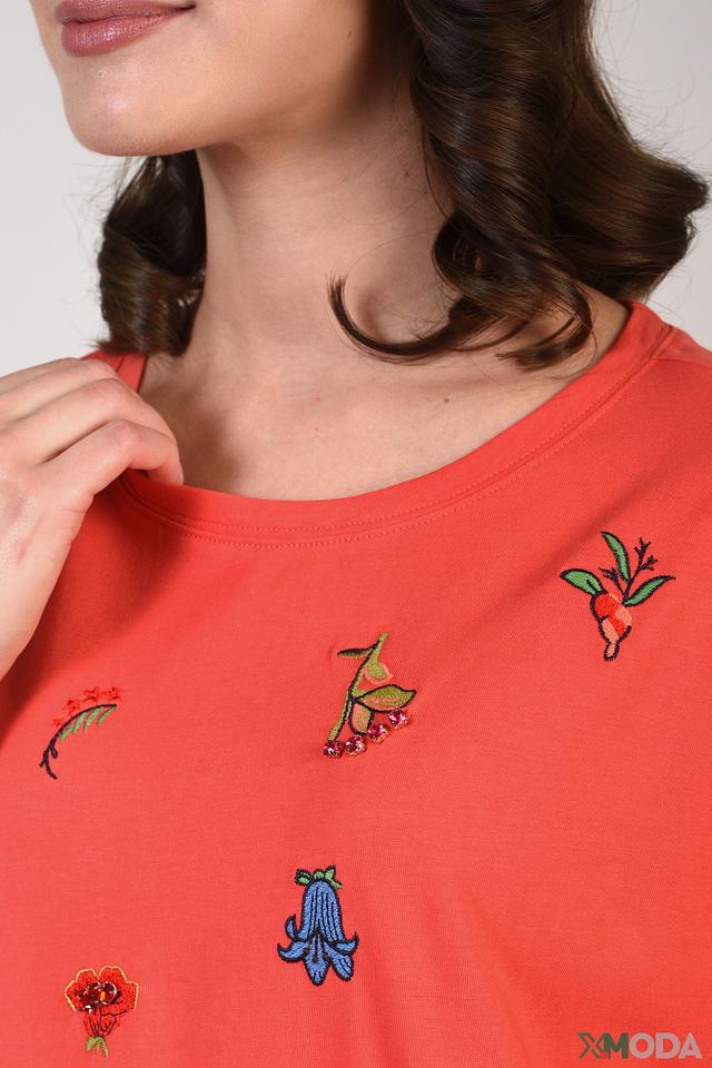 Футболка Pezzo с вышивкой коралловая
