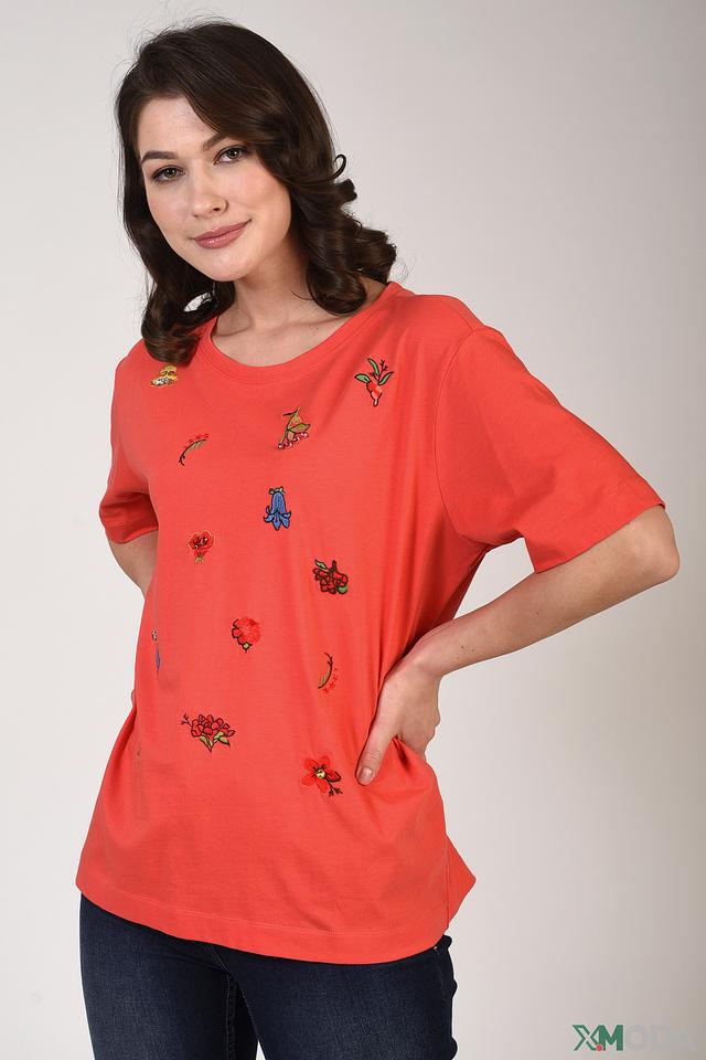 Коралловая футболка Pezzo с яркой вышивкой в виде цветов и насекомых. Изготовлена из 100% хлопка, обеспечивая комфорт и воздухопроницаемость. Отличный выбор для создания стильного и непринужденного образа. Состав: хлопок 100%