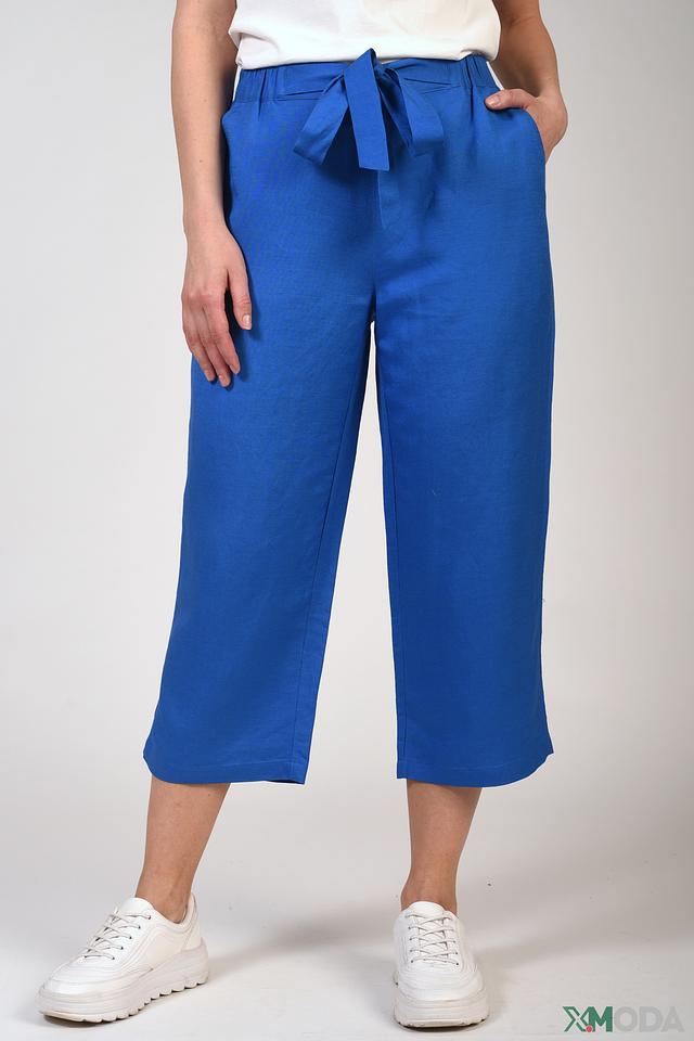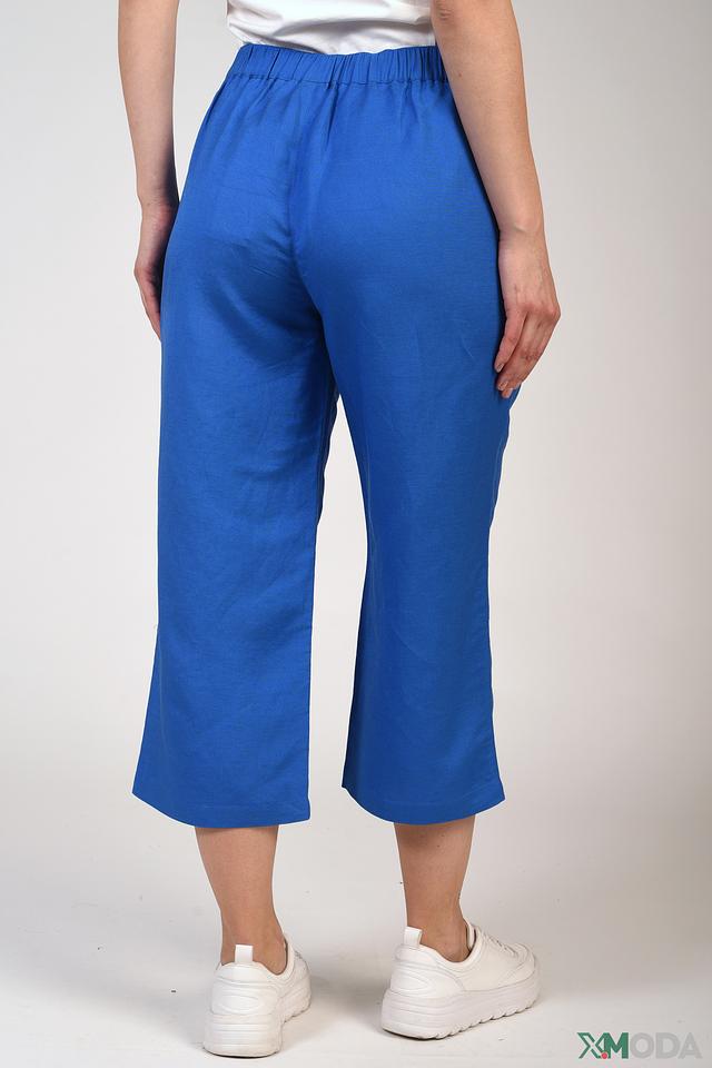 Яркий синий цвет брюк позволяет легко сочетать их с различными топами и обувью, создавая как повседневные, так и более нарядные образы. Состав ткани: 55% лен, 45% вискоза.