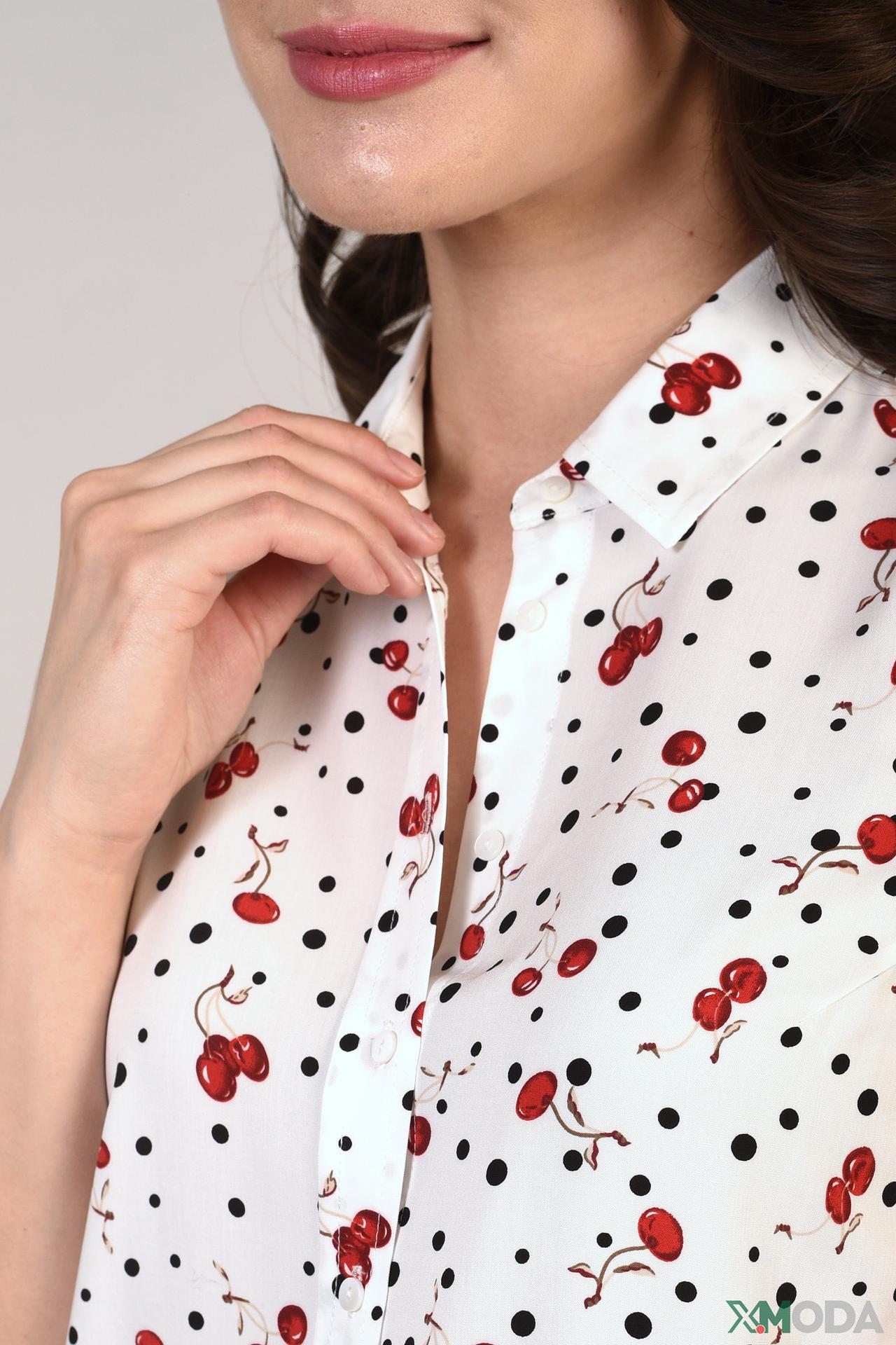 Белая рубашка Pezzo без рукавов с принтом вишни