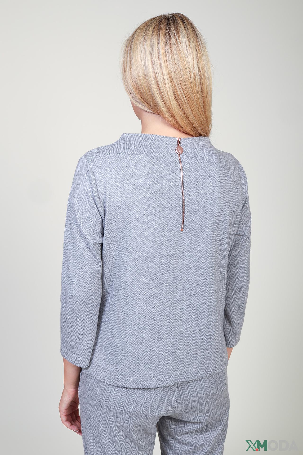 - Текстура: Мелкий узор "ёлочка" на ткани создает интересный визуальный эффект и придает пуловеру глубину.