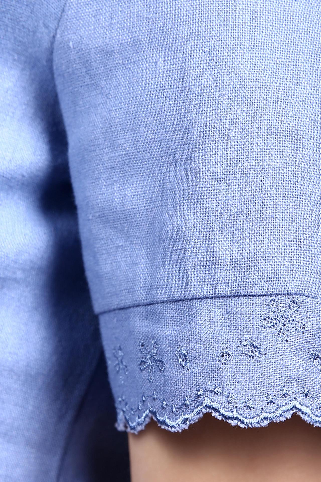 Блуза идеально подойдет для создания как деловых, так и повседневных образов, легко сочетаясь с юбками, брюками и шортами. Натуральный состав ткани обеспечивает комфорт в течение всего дня, а легкий оттенок голубого добавит свежести вашему стилю. Эта блуза станет неотъемлемой частью вашего гардероба.