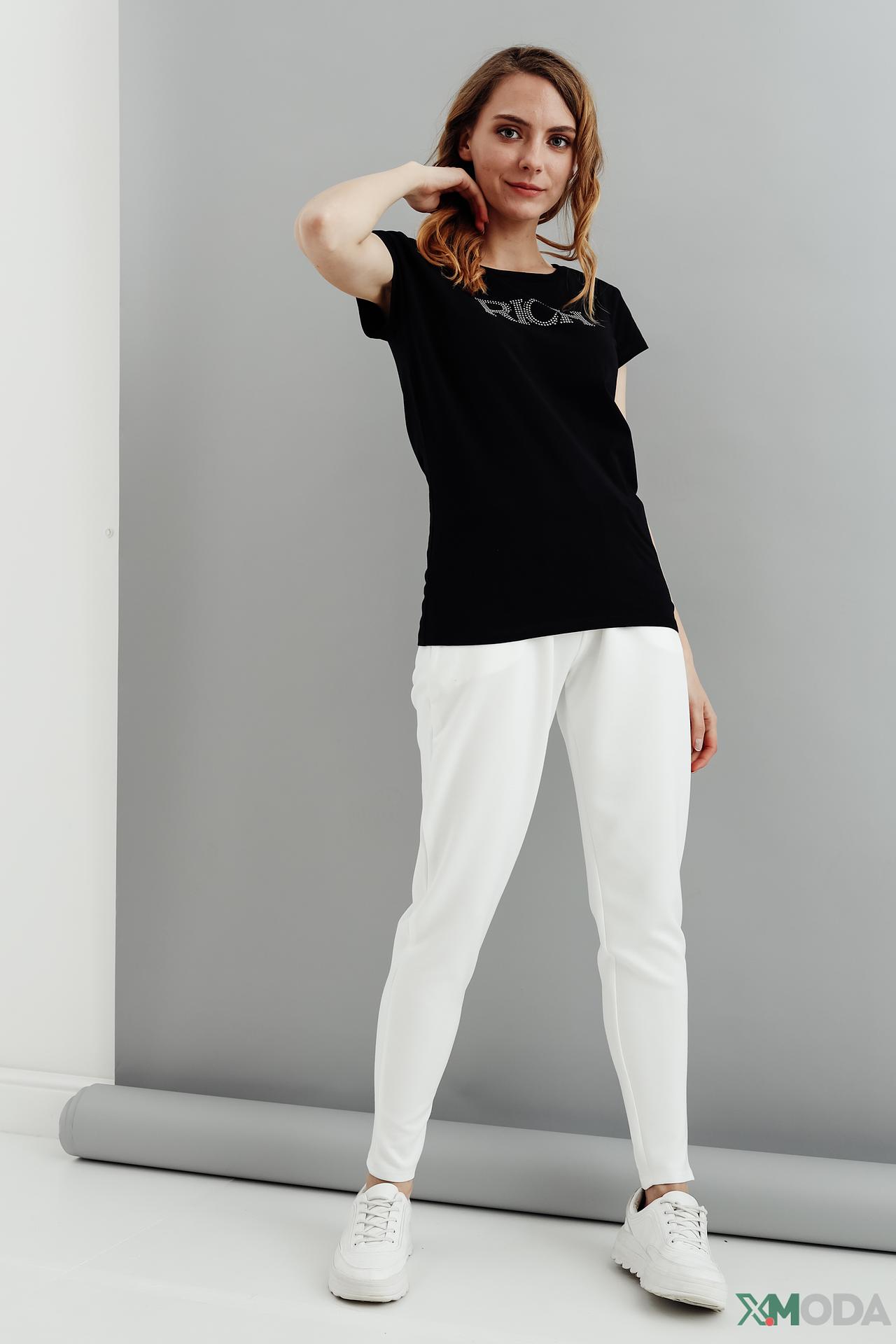Оригинальность футболке придает эффектный декор из страз на груди в виде надписи "RICH" и аналогичный узор на спине. Этот акцент делает изделие более женственным и привлекательным, позволяя создавать выразительные образы. Футболка прекрасно сочетается как с повседневными джинсами и брюками, так и с юбками.