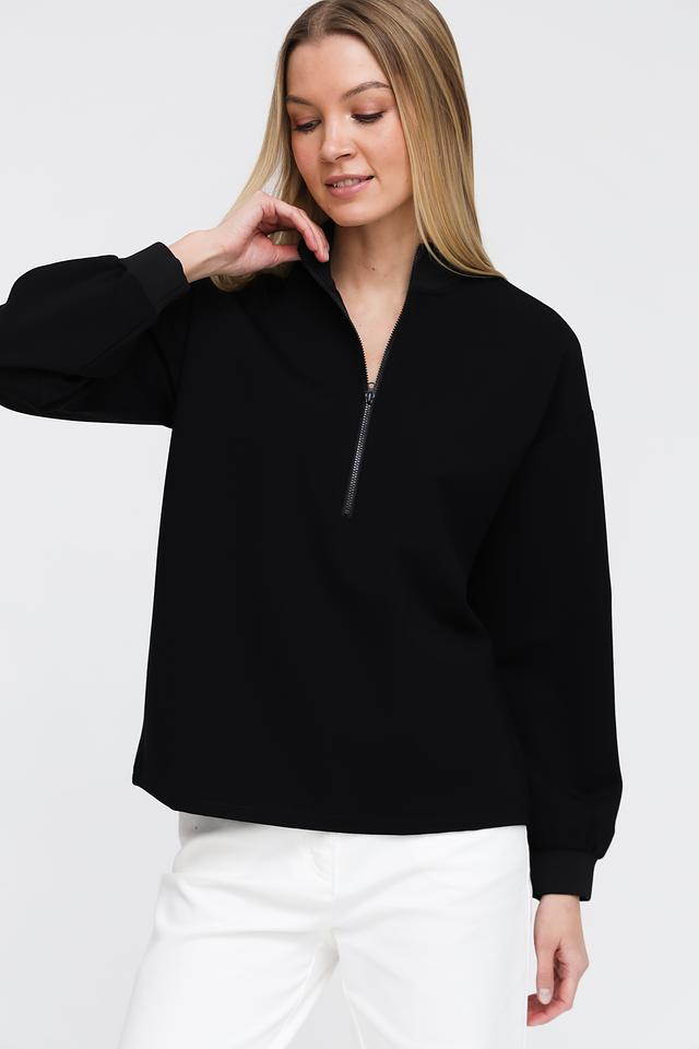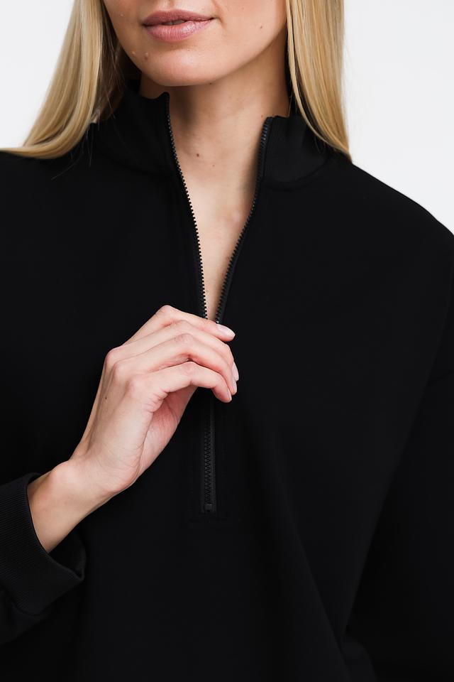 Чёрный пуловер Pezzo с молнией – стильная и комфортная модель на каждый день. Изготовлен из мягкой вискозы с добавлением нейлона и эластана, обеспечивающих приятные тактильные ощущения и хорошую посадку по фигуре. Состав: вискоза 68%, нейлон 27%, эластан 5%