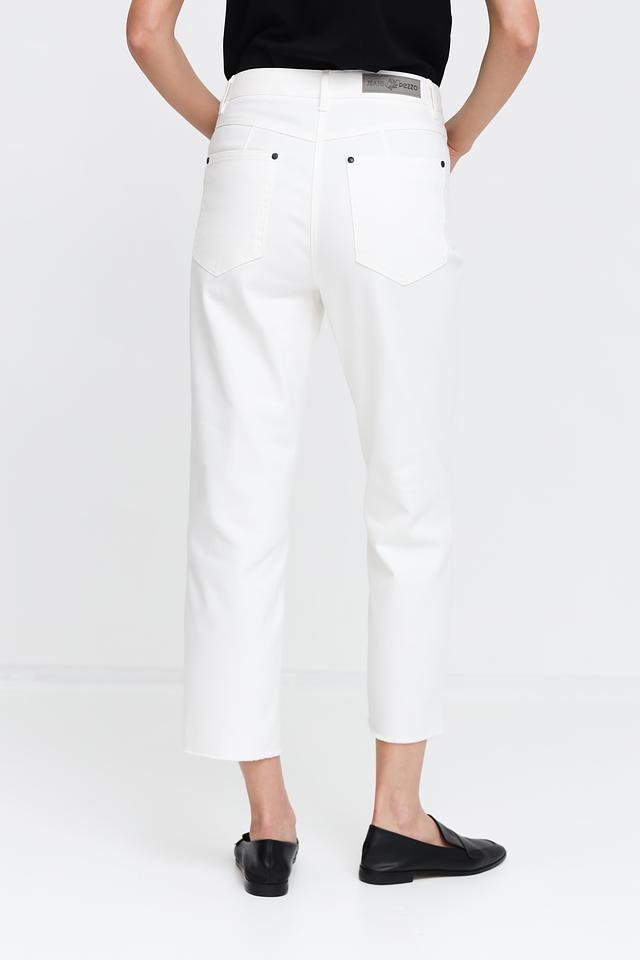 Белые джинсы Pezzo укороченного кроя — стильное и комфортное решение для создания модных образов. Модель выполнена из качественного хлопка с добавлением эластана, что обеспечивает удобную посадку и свободу движений. Состав: хлопок 97%, спандекс 3%