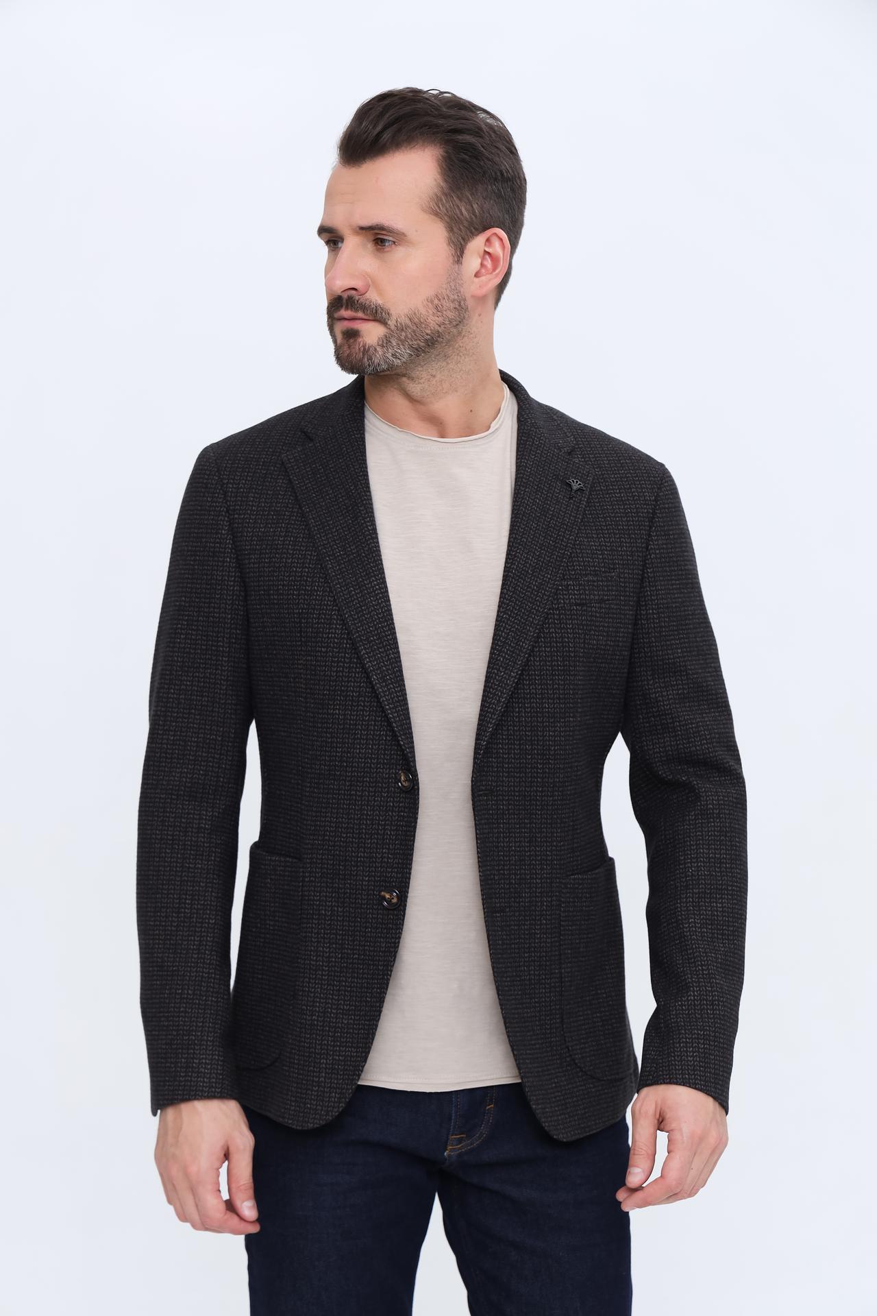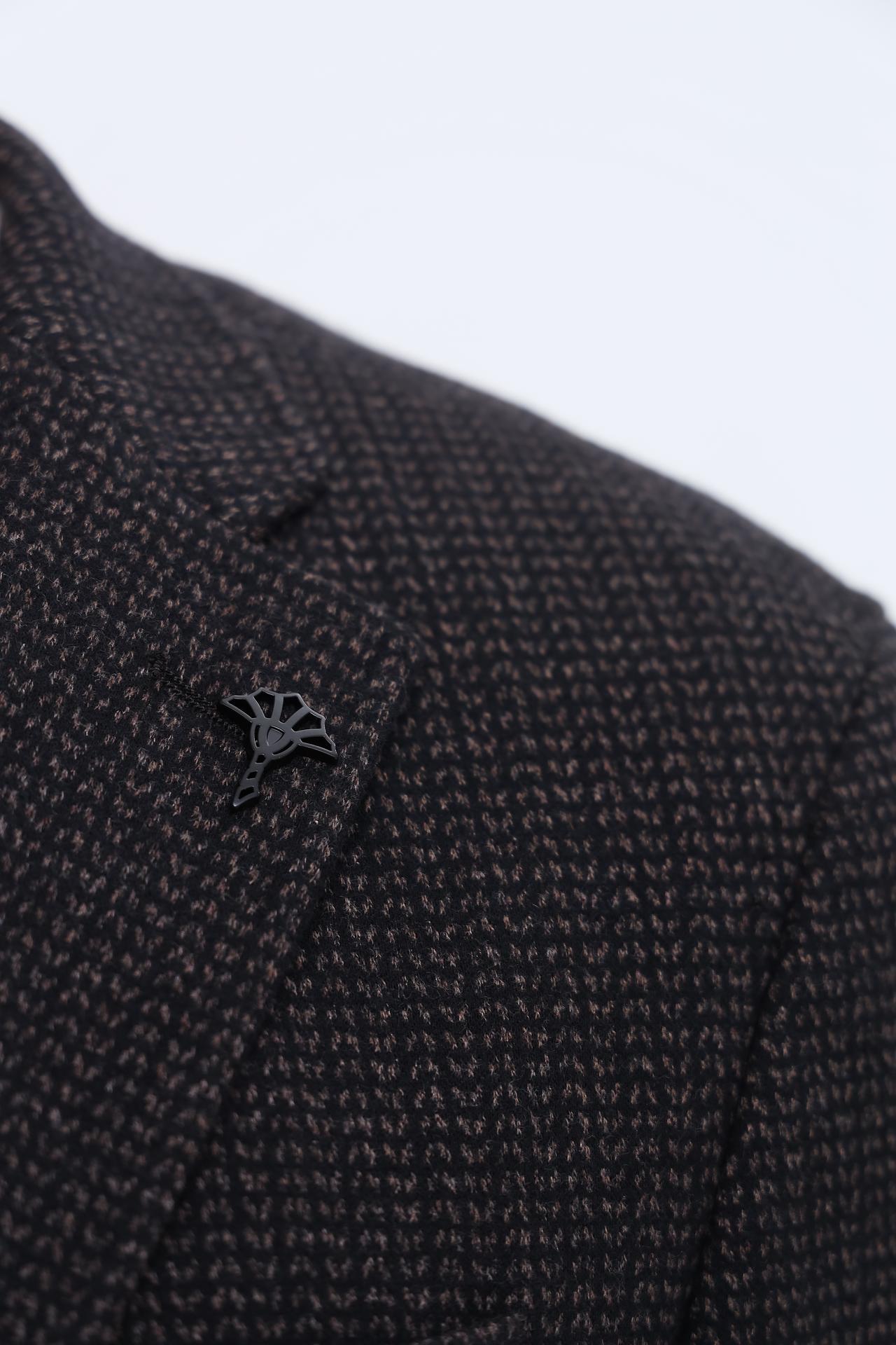- Цвет: Универсальный серый цвет с мелким принтом позволяет легко комбинировать пиджак с различными элементами одежды, создавая множество стильных комбинаций.