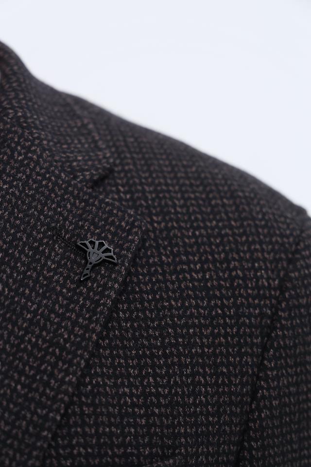 Состав ткани: 44% полиэстер, 30% вискоза, 24% хлопок, 2% эластан. Такое сочетание материалов обеспечивает комфорт в носке, хорошую воздухопроницаемость и лёгкость в уходе. Пиджак прекрасно сохраняет форму и не мнется.