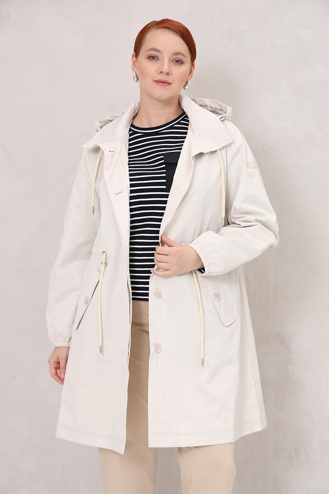 Бежевый плащ Gerry Weber EDITION — стильная и практичная верхняя одежда с капюшоном и шнурками на талии. Модель выполнена из хлопка с добавлением полиэстера и полиамида, что обеспечивает комфорт и долговечность. Состав: хлопок 58%, полиэстер 30%, полиамид 12%