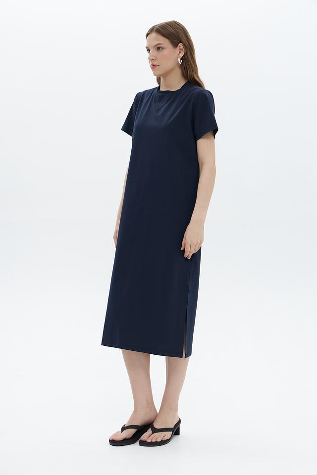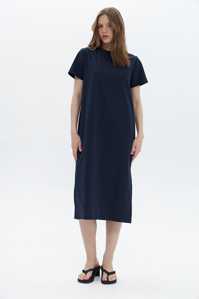 Тёмно-синее платье от Croche прямого кроя – это универсальный предмет гардероба. Платье выполнено из мягкого и приятного к телу трикотажа, имеет длину миди и удобный круглый вырез горловины. Состав: хлопок 52%, полиамид 40%, эластан 8%