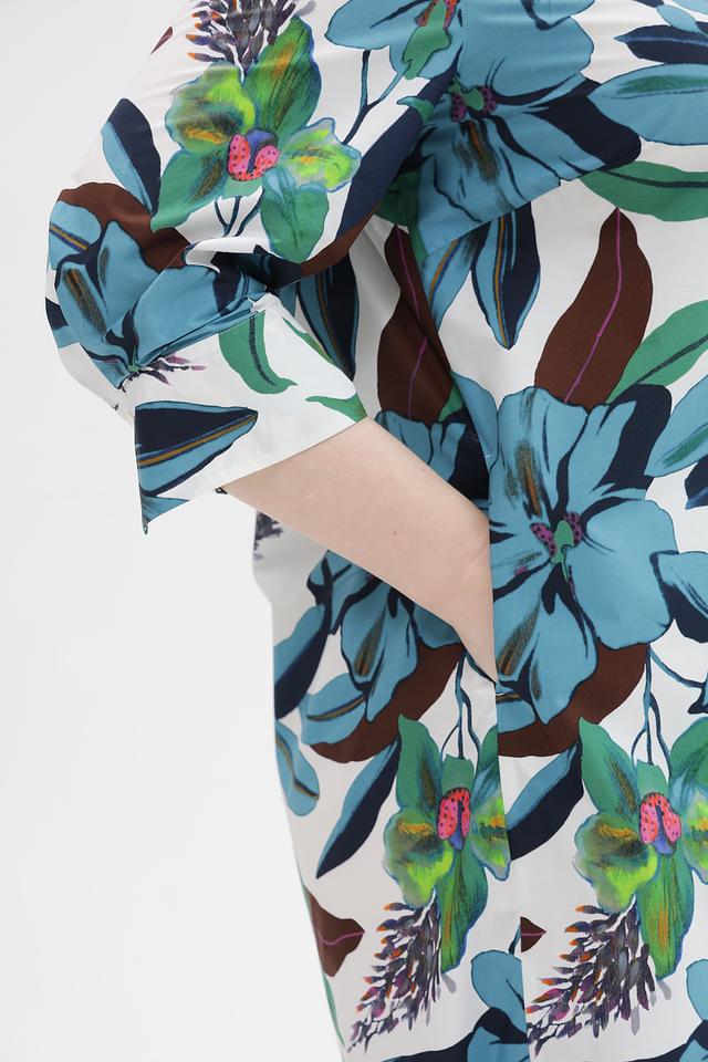 Платье рубашка от Luisa Cerano белого цвета с ярким цветочным принтом. Модель выполнена из 100% хлопка, обеспечивающего комфорт и воздухопроницаемость. Состав: хлопок 100%