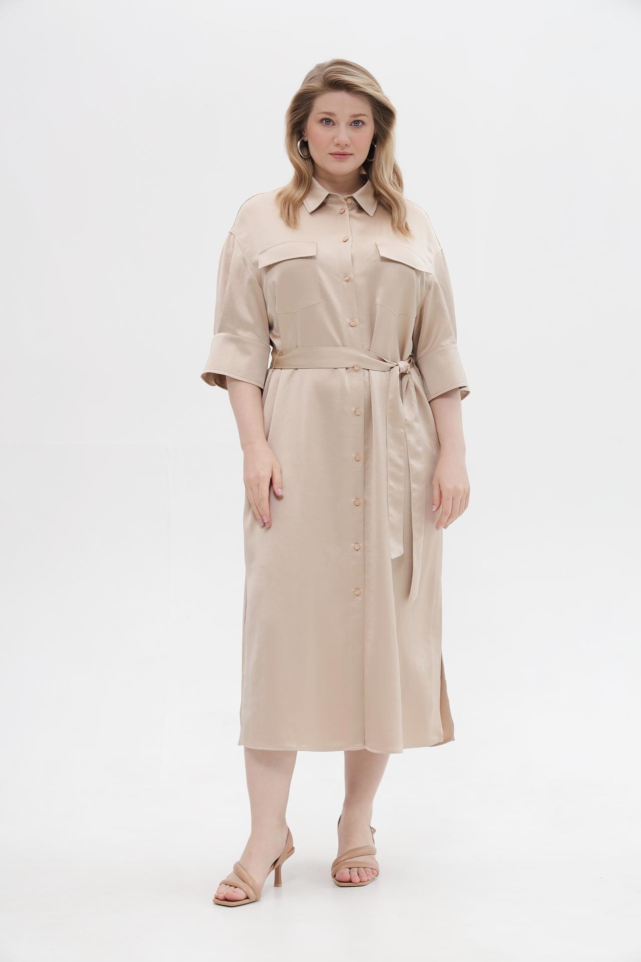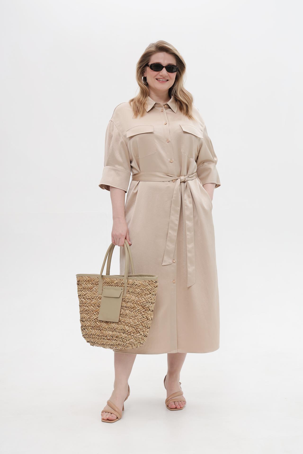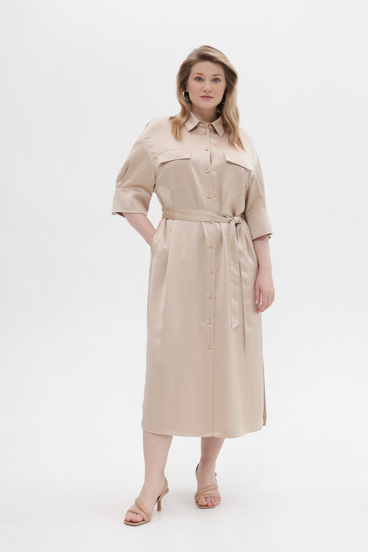 - Фасон: Платье-рубашка с поясом акцентирует достоинства фигуры и создает элегантный образ.
