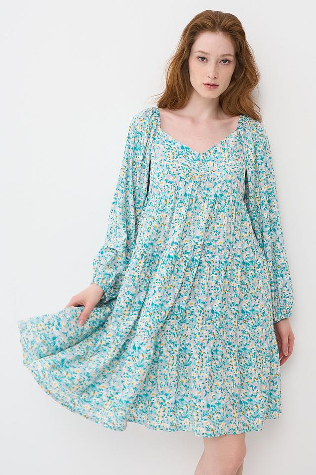 Короткое платье BE YOU голубого цвета с нежным цветочным принтом. Модель выполнена в свободном крое с рукавами-фонариками и открытыми плечами, что придает образу легкость и женственность. Состав: