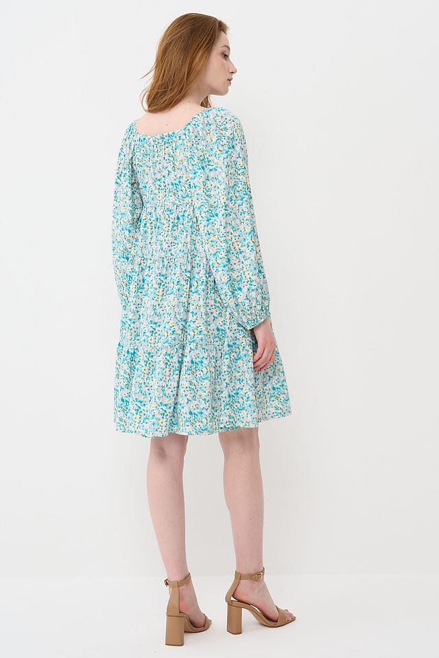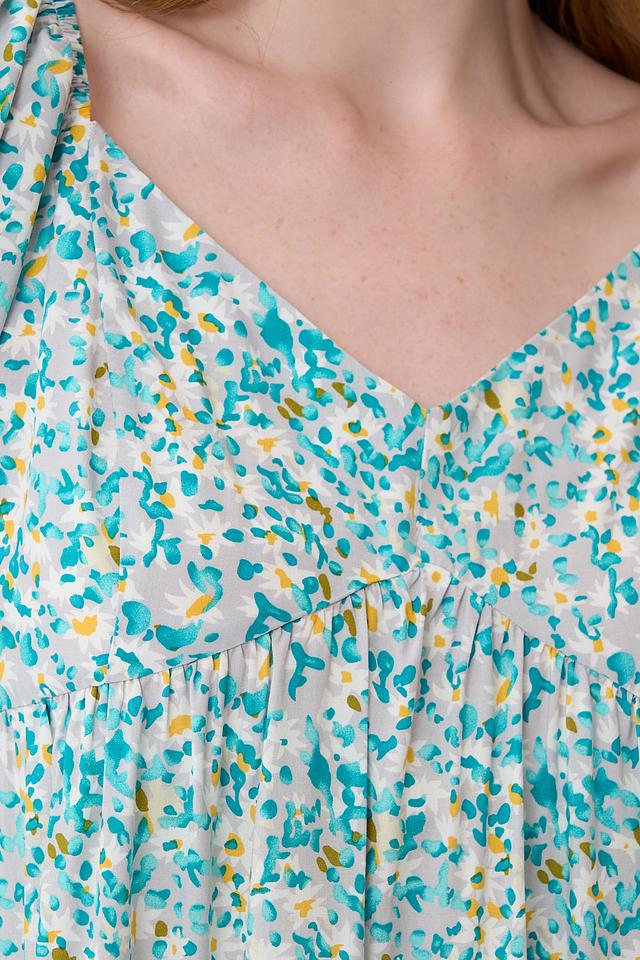 Особенности дизайна: платье выполнено с небольшими сборками на груди и талии, что придает ему дополнительный объем и подчеркивает достоинства фигуры. Мини-длина делает платье идеальным вариантом для летних прогулок и вечеринок.Дополнить образ