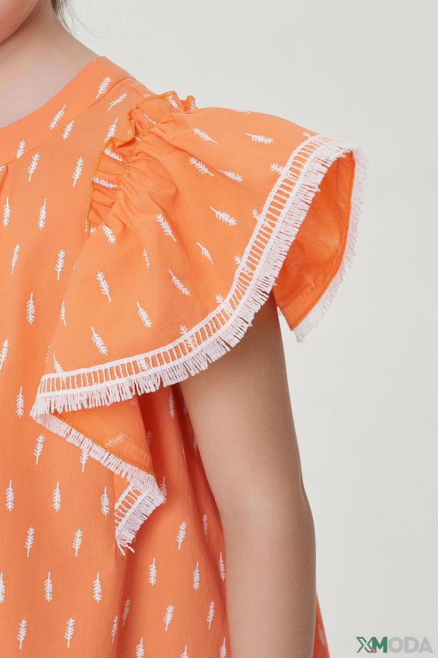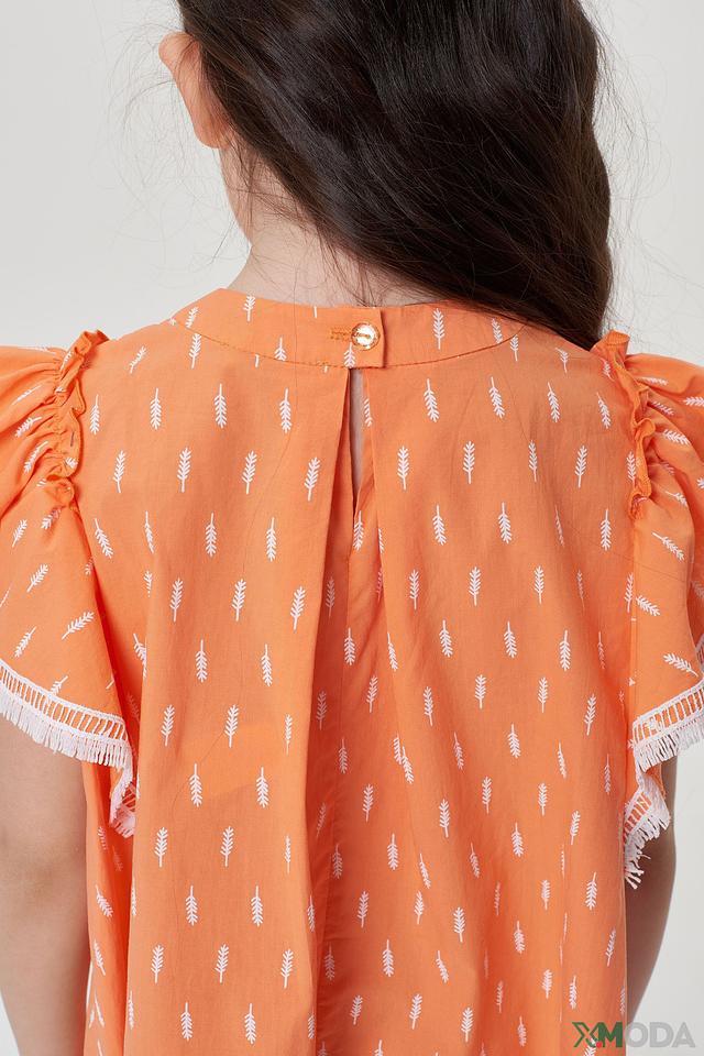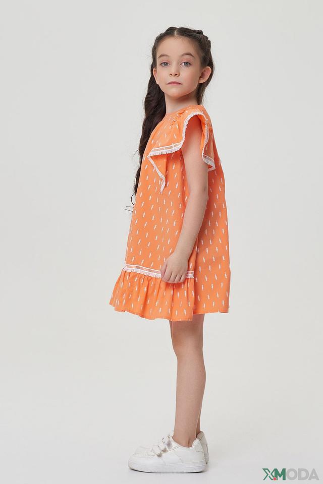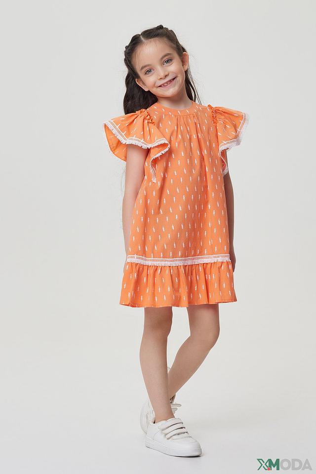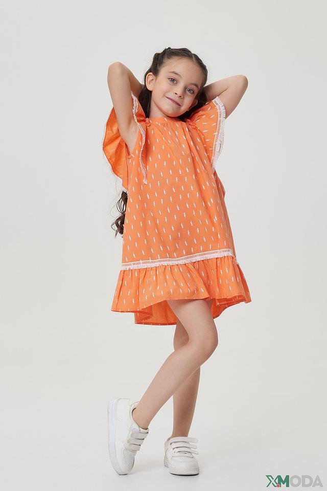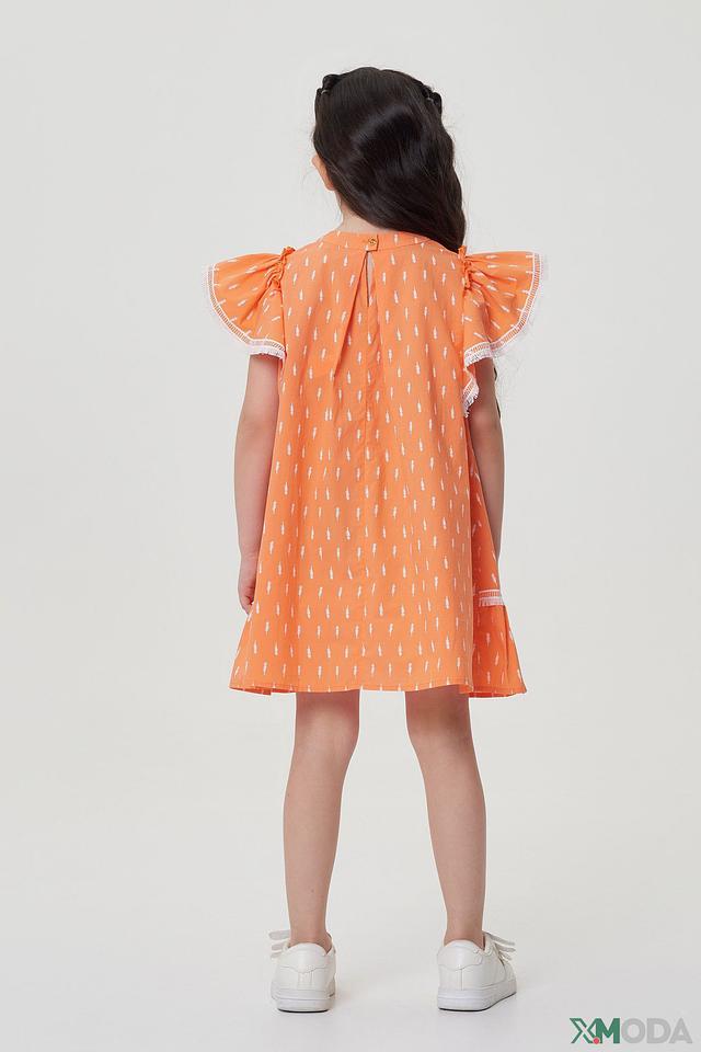 Платье Choupette детское, оранжевое с принтом и кружевом