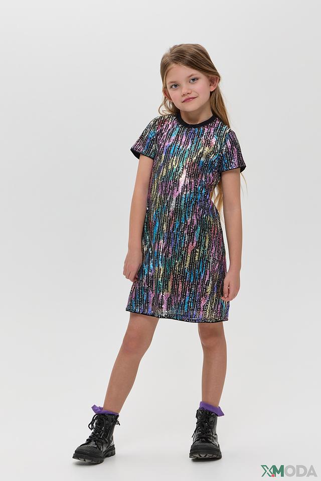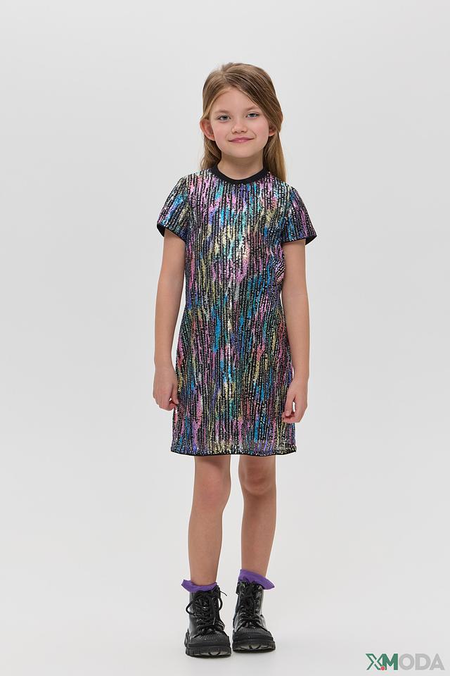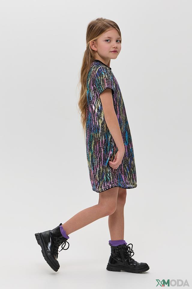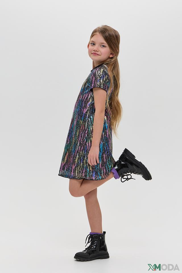Особенностью модели является яркая отделка пайетками, создающая праздничное настроение. Подкладка из 100% хлопка делает платье комфортным в носке, предотвращая раздражение нежной детской кожи.