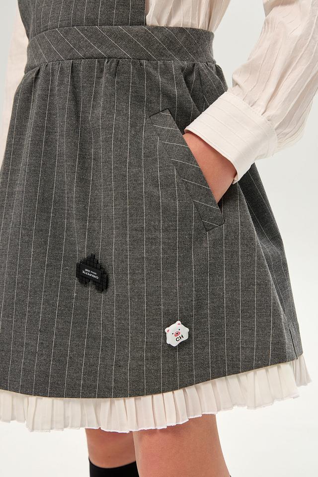 Платье Choupette серого цвета в полоску – стильный и удобный выбор для девочки. Модель с бретелями и юбкой-плиссе добавит образу легкости и очарования. Идеально подходит для повседневной носки и особых случаев. Состав: Состав_подкладка вискоза 100%, полиэстер 74%, вискоза 23%, полиуретан 3%