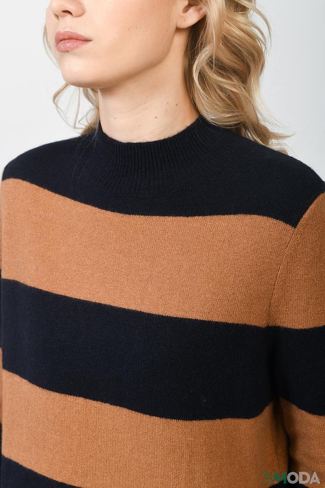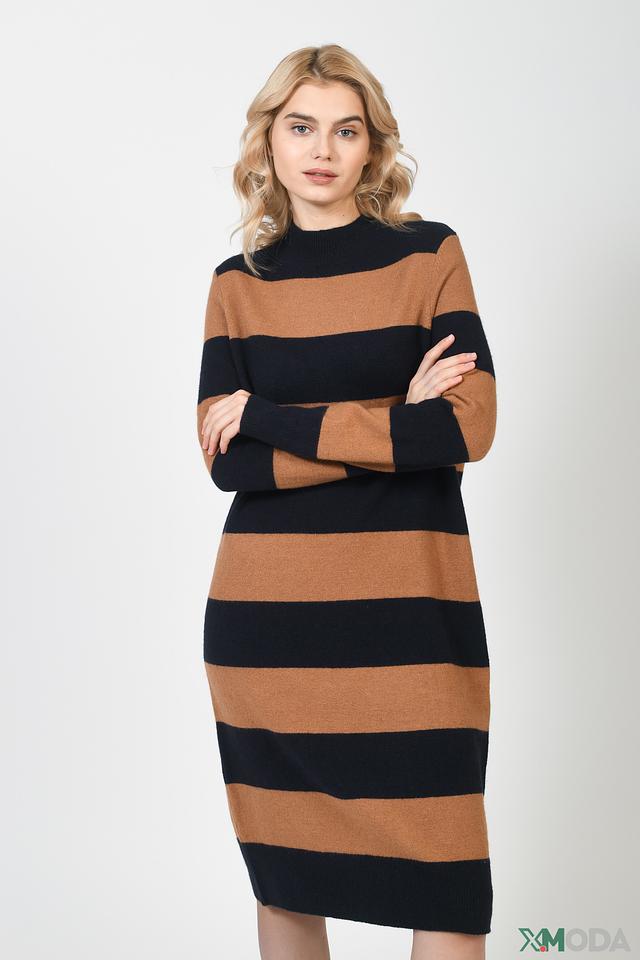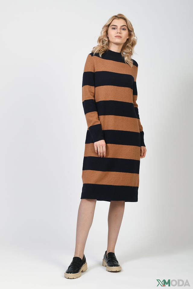 Платье Comma коричневого и черного цвета – это стильное и удобное решение для повседневного гардероба. Трикотажное платье с полосками и высоким горлом подчеркнет вашу индивидуальность и обеспечит комфорт в течение дня. Состав: хлопок 50%, полиамид 30%, шерсть 17%, эластан 3%
