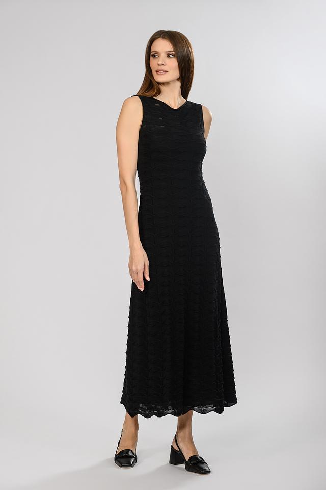 Чёрное платье от D. Exterior выполнено из фактурной ткани с V-образным вырезом и длиной миди. Элегантный силуэт и оригинальная текстура делают это платье отличным выбором для создания стильного образа. Состав: Состав_подкладка полиамид 100%, хлопок 70%, вискоза 19%, полиамид 11%