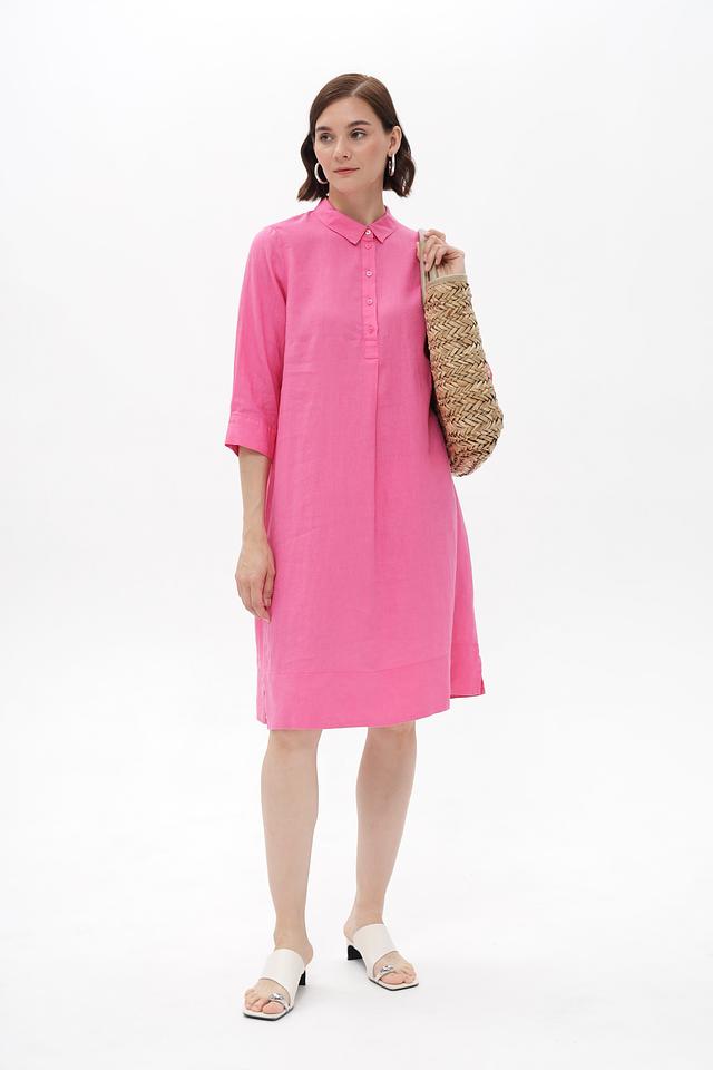 Платье-рубашка от Gerry Weber выполнено из натурального льна, что делает его идеальным выбором для летнего гардероба. Розовый цвет придает образу свежесть и женственность.