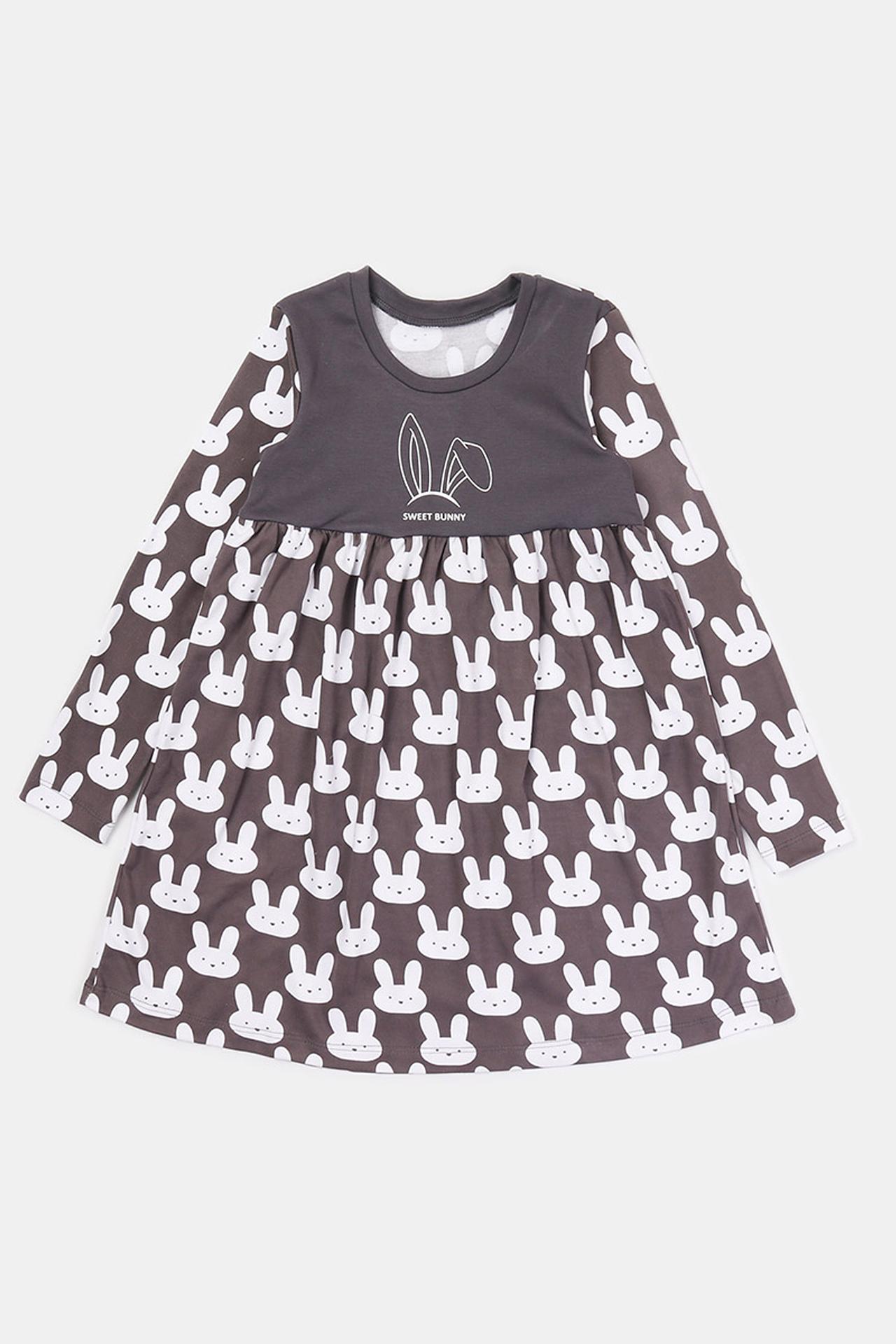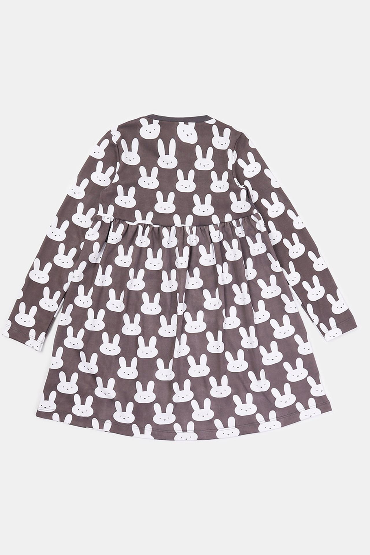 Платье КотМарКот для девочки, серое, с зайчиками