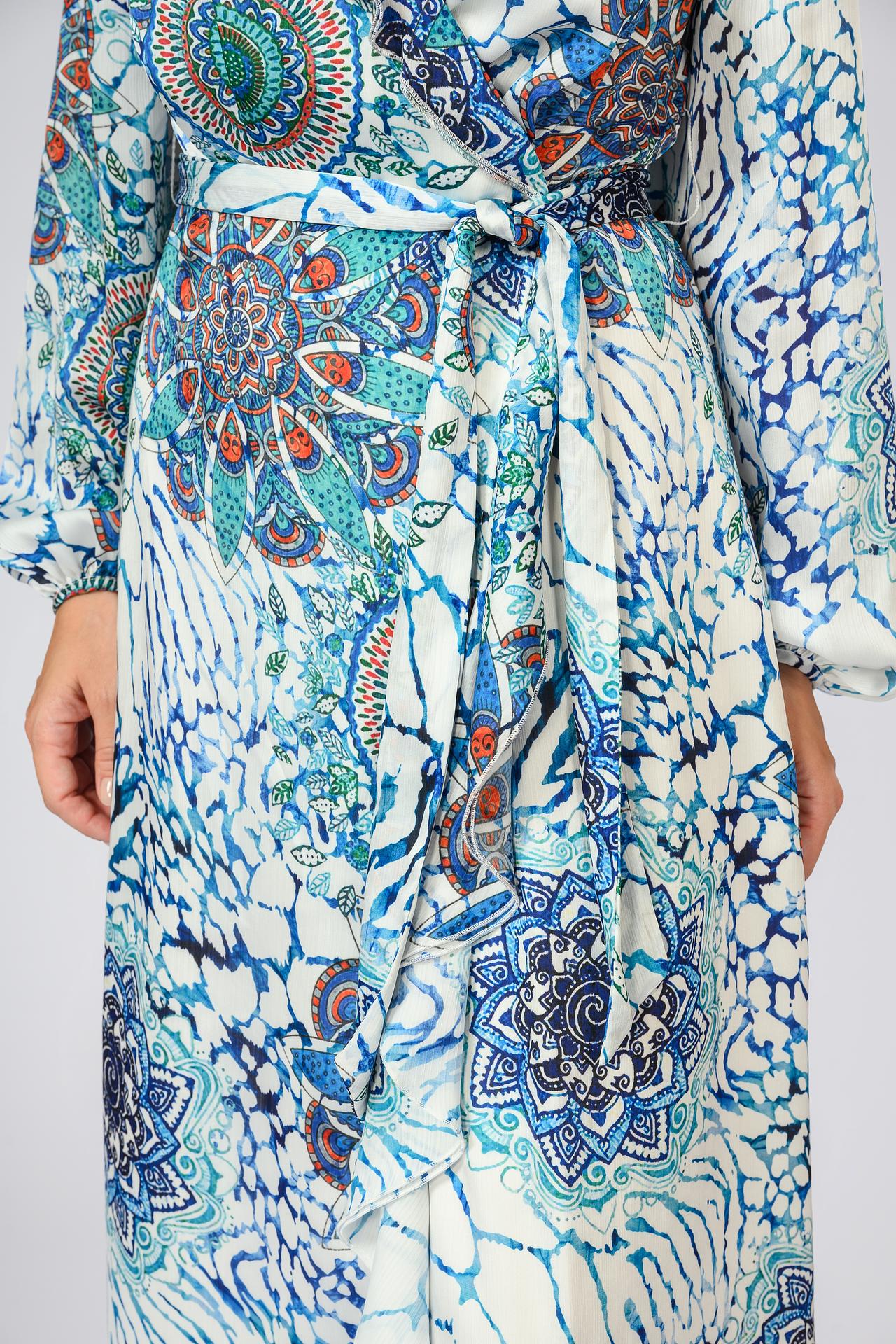 - Уникальный дизайн. Платье украшено великолепным разноцветным мандала-принтом, который притягивает взгляды и добавляет этнические нотки. Деликатные рюши по краю V-образного выреза и объемные рукава на резинке завершают элегантный образ.