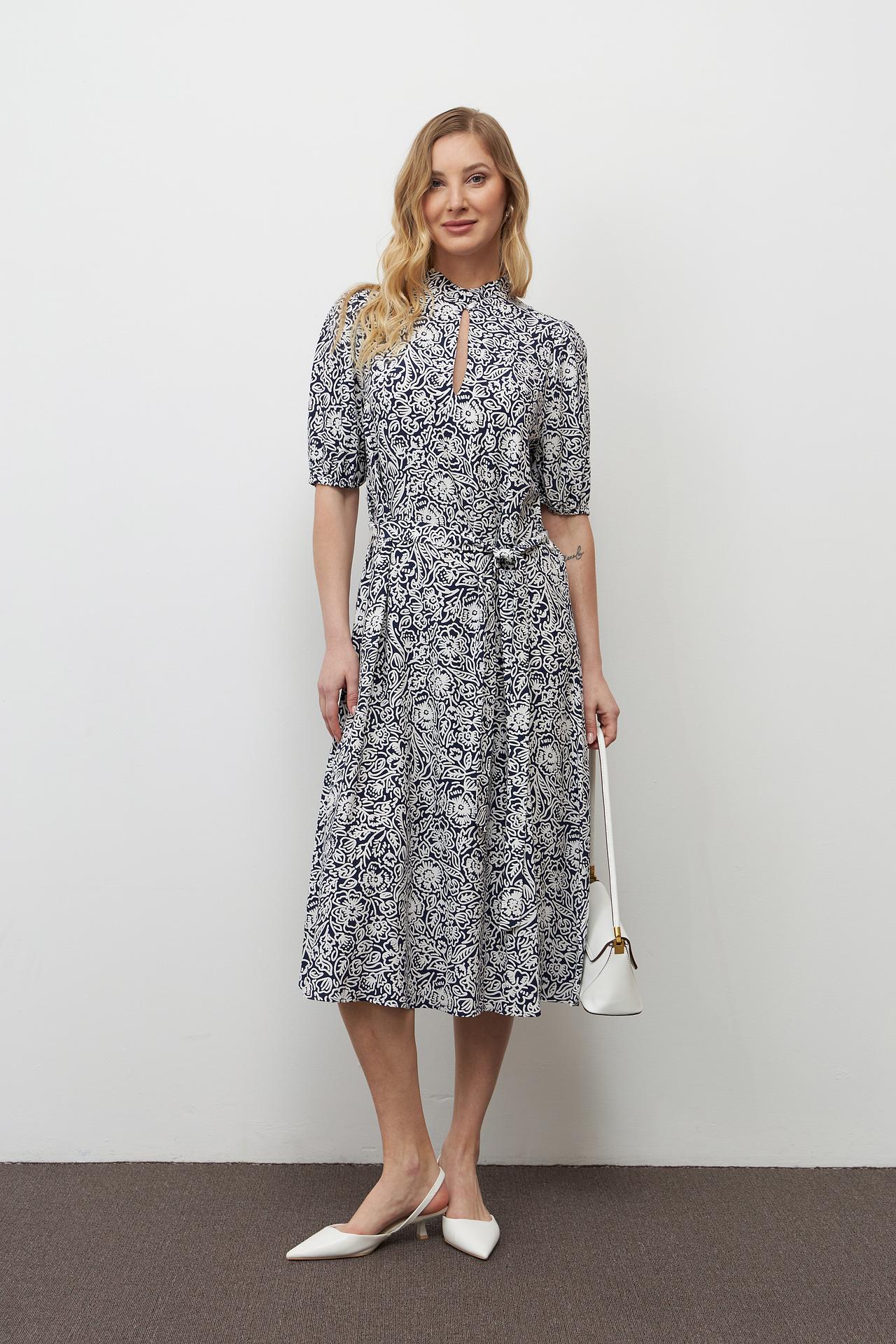 Платье миди Seidensticker в цветочный принт, темно-синее