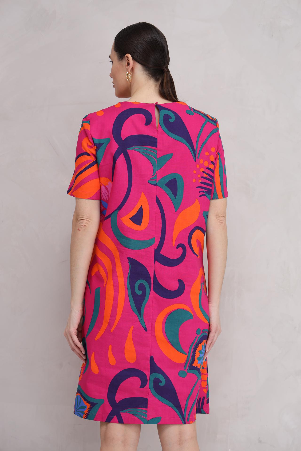 - Цвет: Фуксия с оранжевыми, зелеными и синими цветами – насыщенный и стильный вариант для лета.