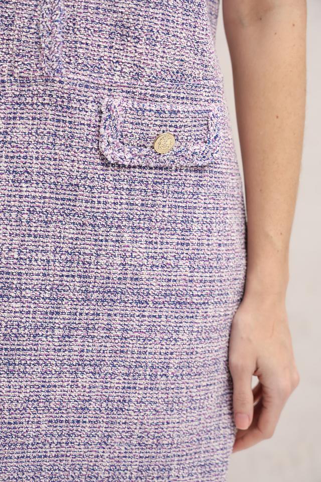 Передняя часть платья застегивается на ряд золотистых пуговиц, добавляющих образу изысканности. Боковые швы дополнены накладными карманами с декоративной отделкой в тон пуговицам. Платье идеально подходит для создания как повседневных, так и более формальных образов.