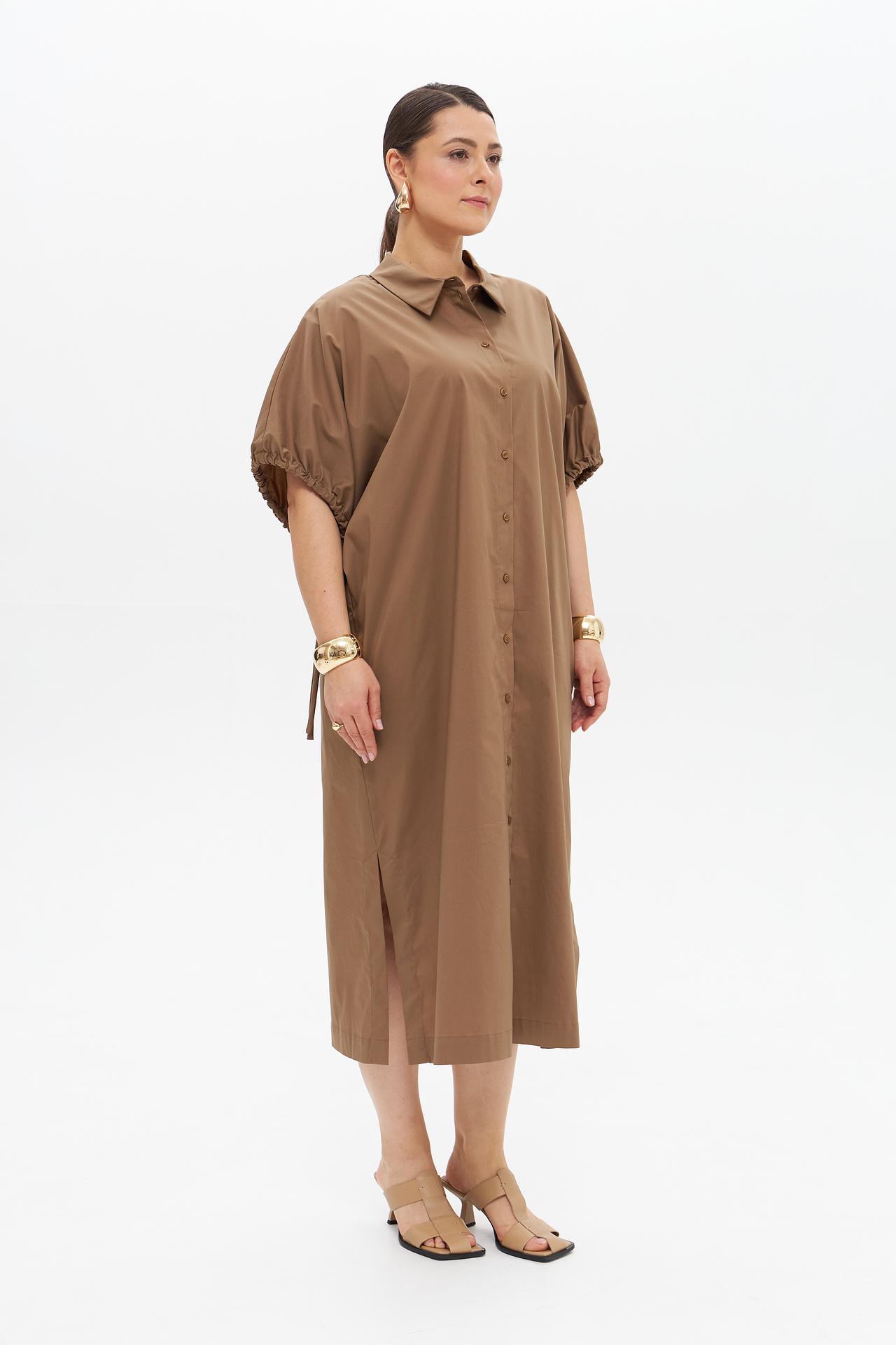 Платье рубашка Catnoir, коричневое, с рукавами на кулиске
