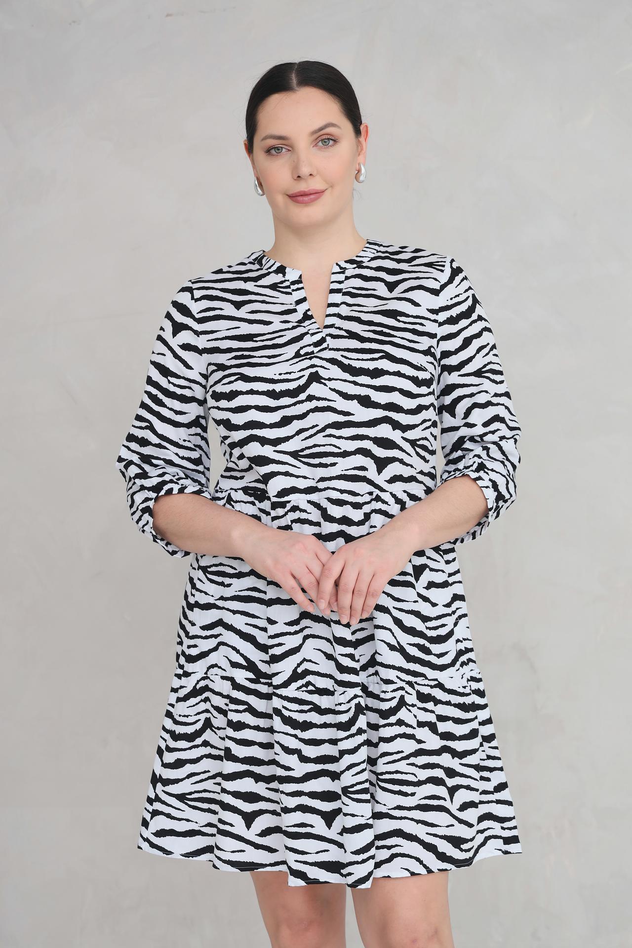 - Оригинальный принт: Полосатый узор придает платью выразительность и стиль.