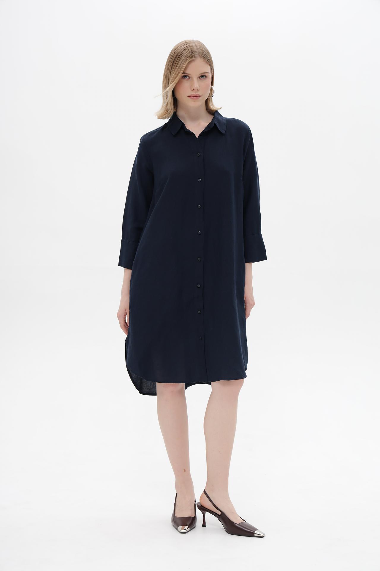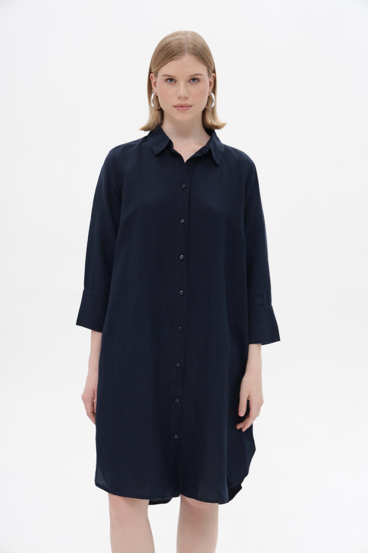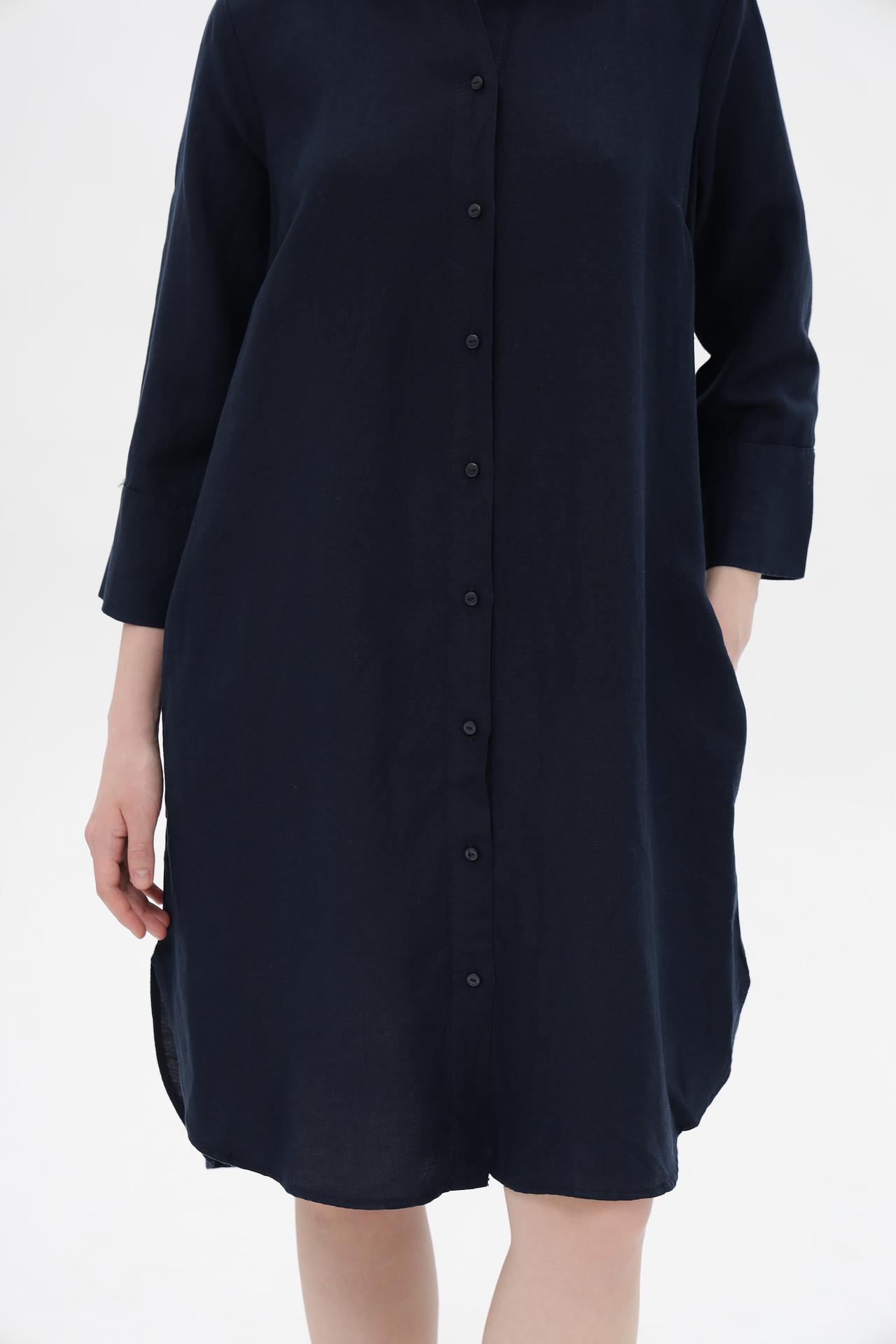 - Рубашечный стиль: Классический воротник и ряд пуговиц по всей длине придают платью деловую элегантность, сохраняя при этом расслабленный повседневный вид. Это делает его подходящим как для офиса, так и для прогулок.