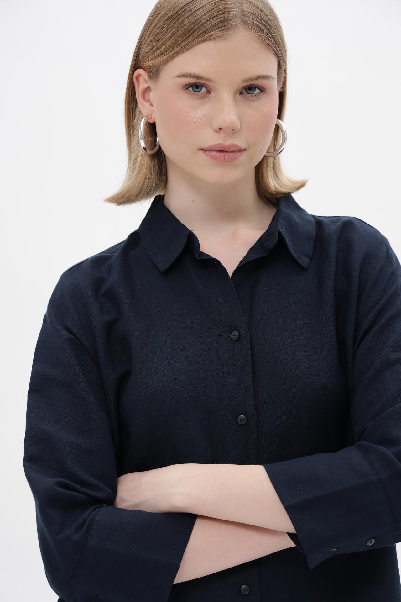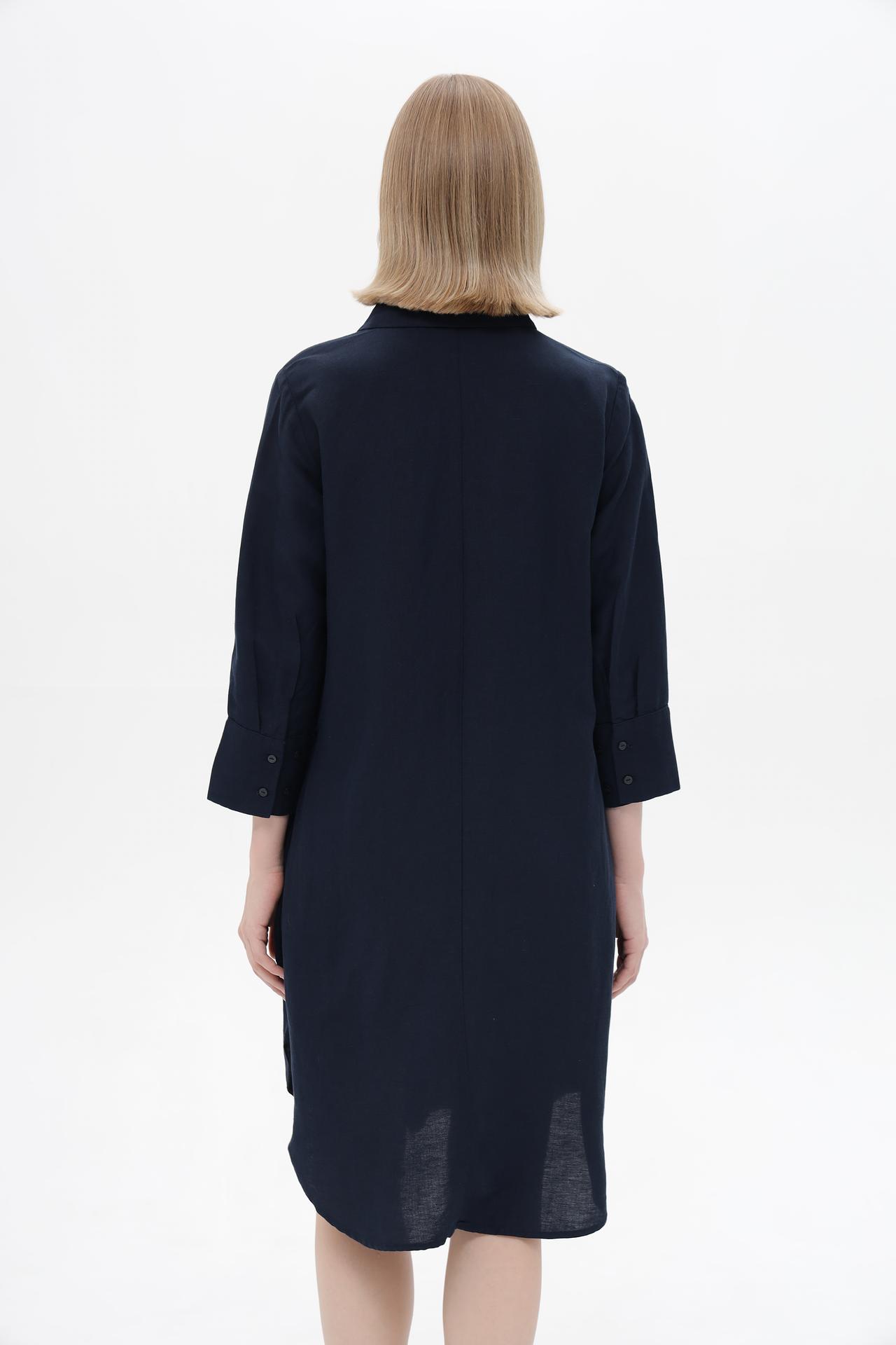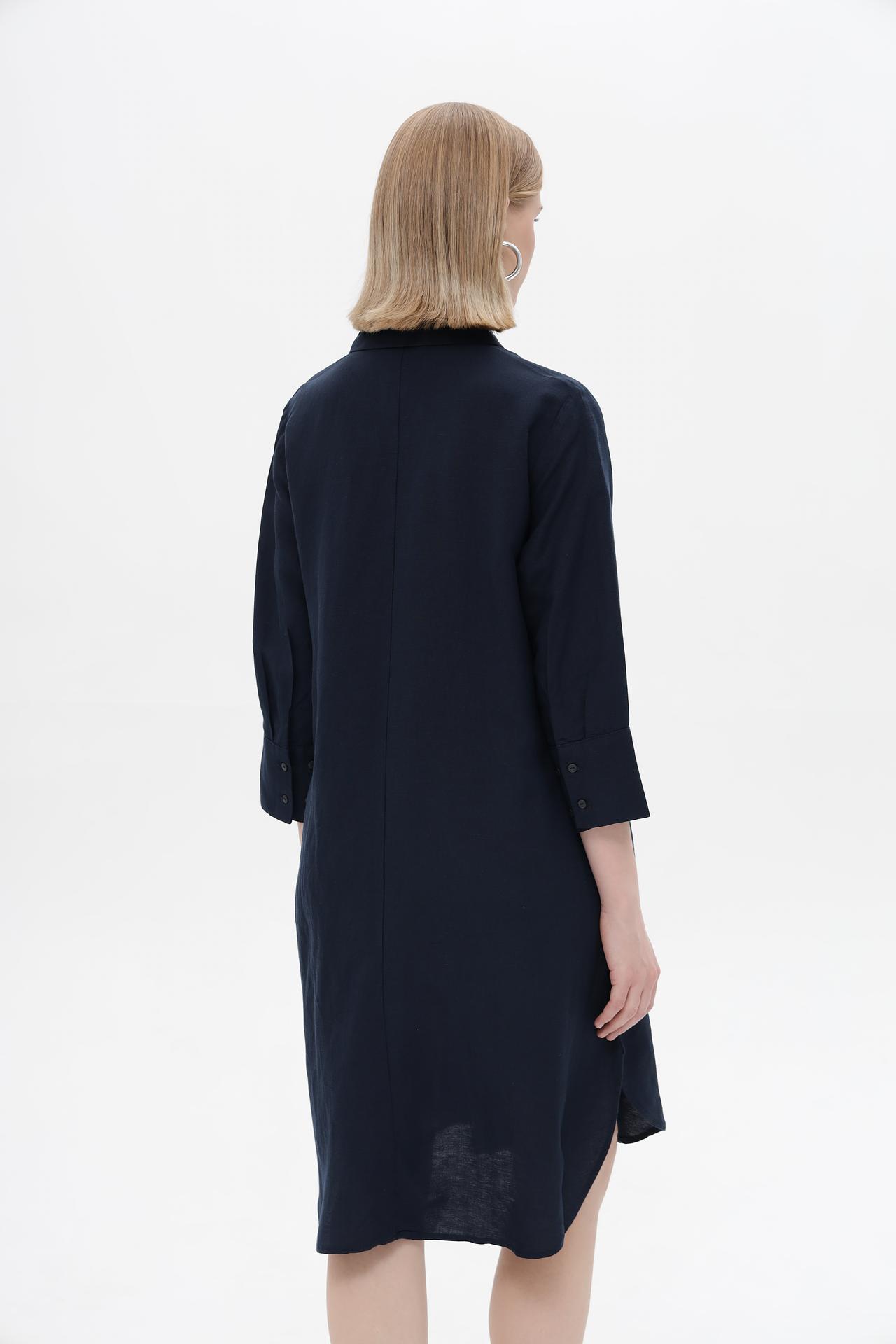 - Рубашечный стиль: Классический воротник и ряд пуговиц по всей длине придают платью деловую элегантность, сохраняя при этом расслабленный повседневный вид. Это делает его подходящим как для офиса, так и для прогулок.
