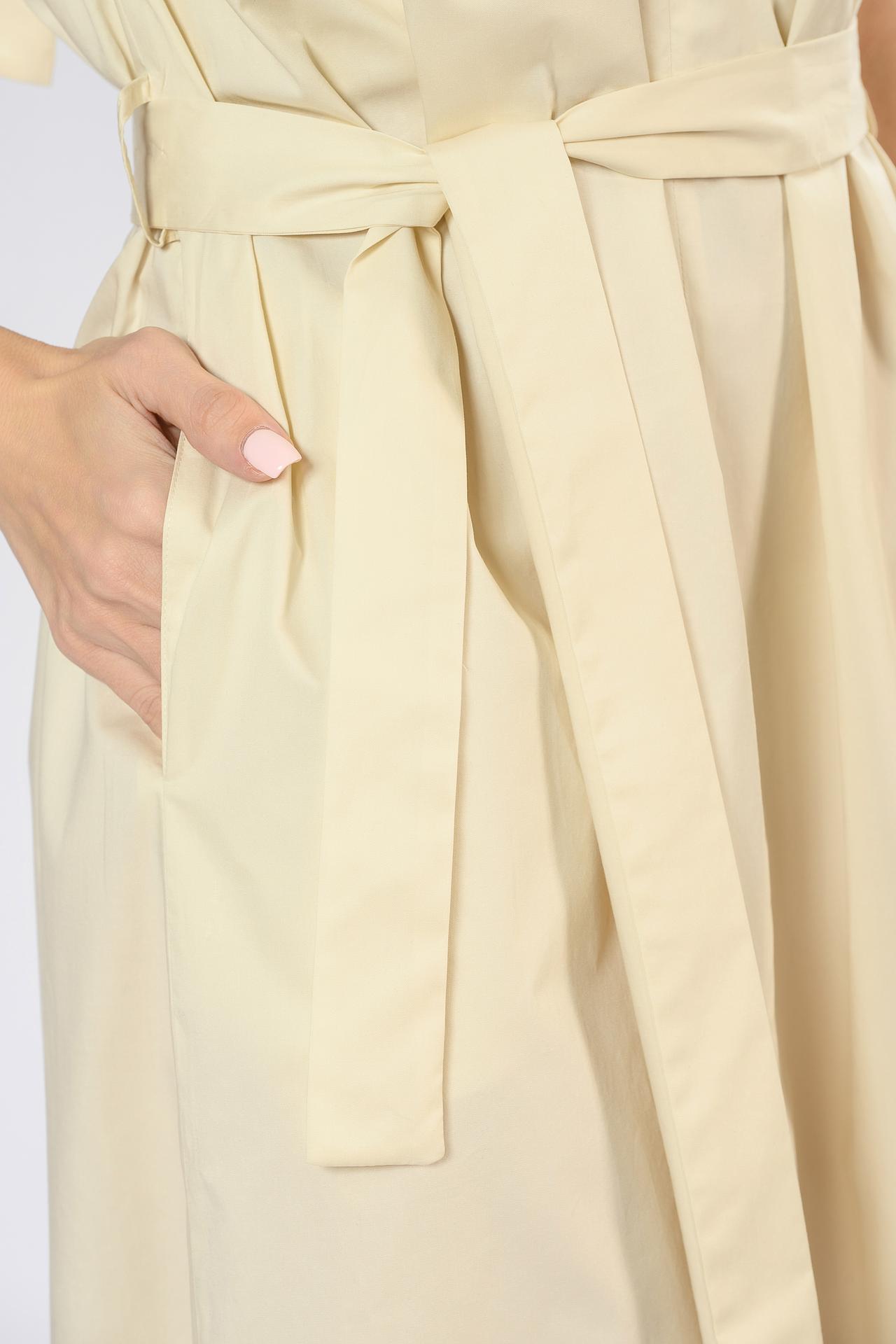 Платье Tricot Chic из хлопка с поясом, кремовое