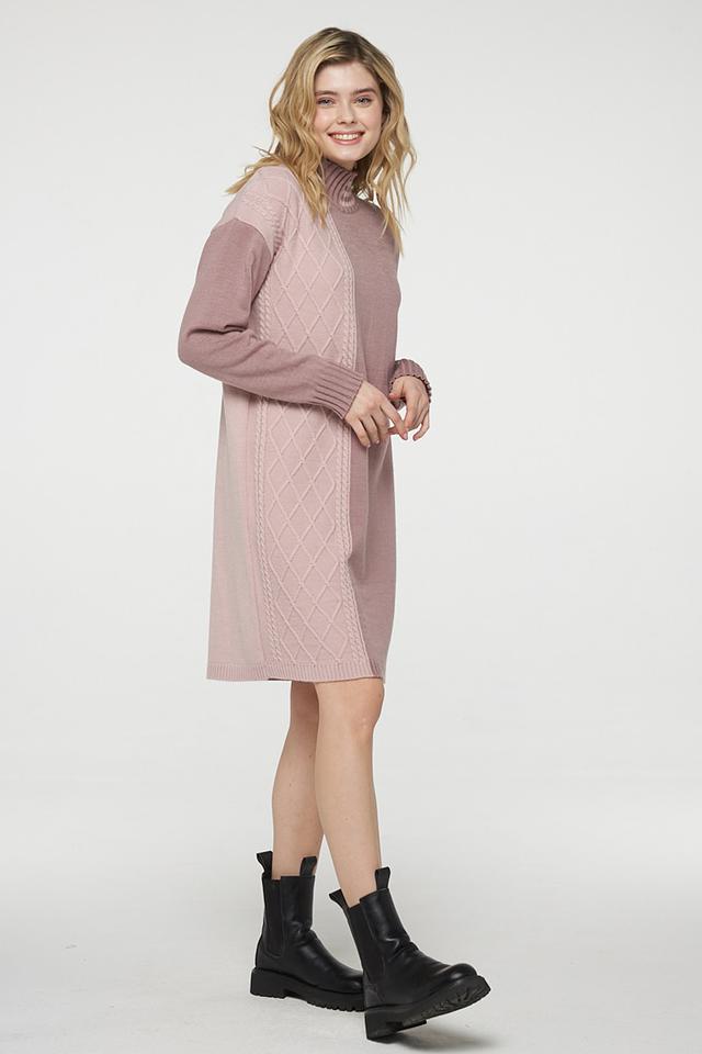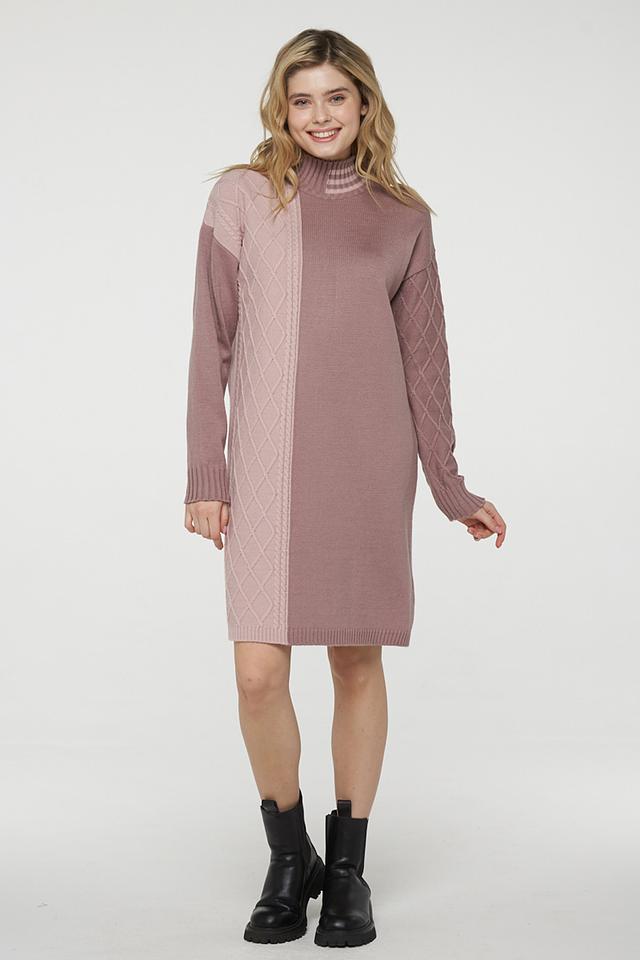 Платье VAY пудрового цвета – это стильное и комфортное решение для повседневного образа. Модель выполнена из мягкого трикотажа с элементами вязания косами, что придает ей особый шарм и текстуру. Состав: пан 70%, шерсть 30%
