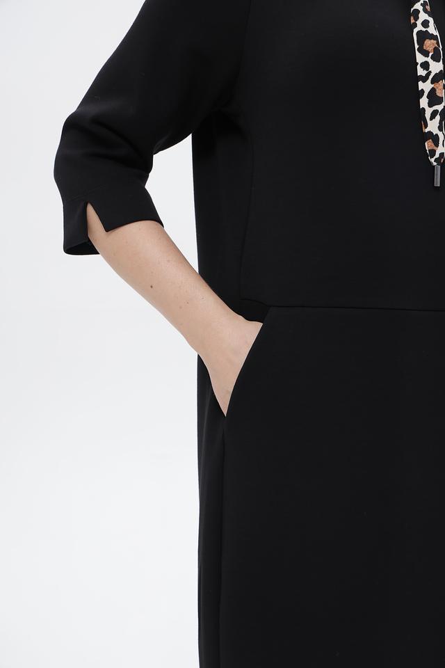 Чёрное платье Via Appia – элегантная модель с оригинальным леопардовым декором. Изготовлено из вискозы с добавлением эластана и полиэстера, обеспечивающих комфорт и удобство в носке. Состав: вискоза 49%, полиэстер 43%, эластан 8%