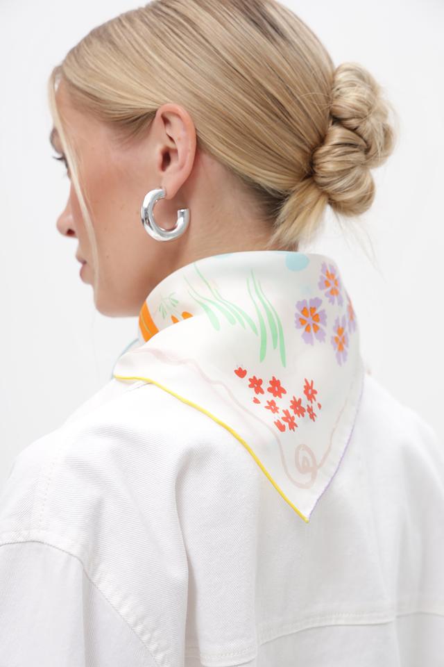 Легкая и воздушная текстура шелка обеспечивает комфорт в носке, а высокое качество материала гарантирует долговечность изделия. Платок можно использовать различными способами: завязать на шее, на голове, на сумке или использовать в качестве декоративного элемента для одежды.